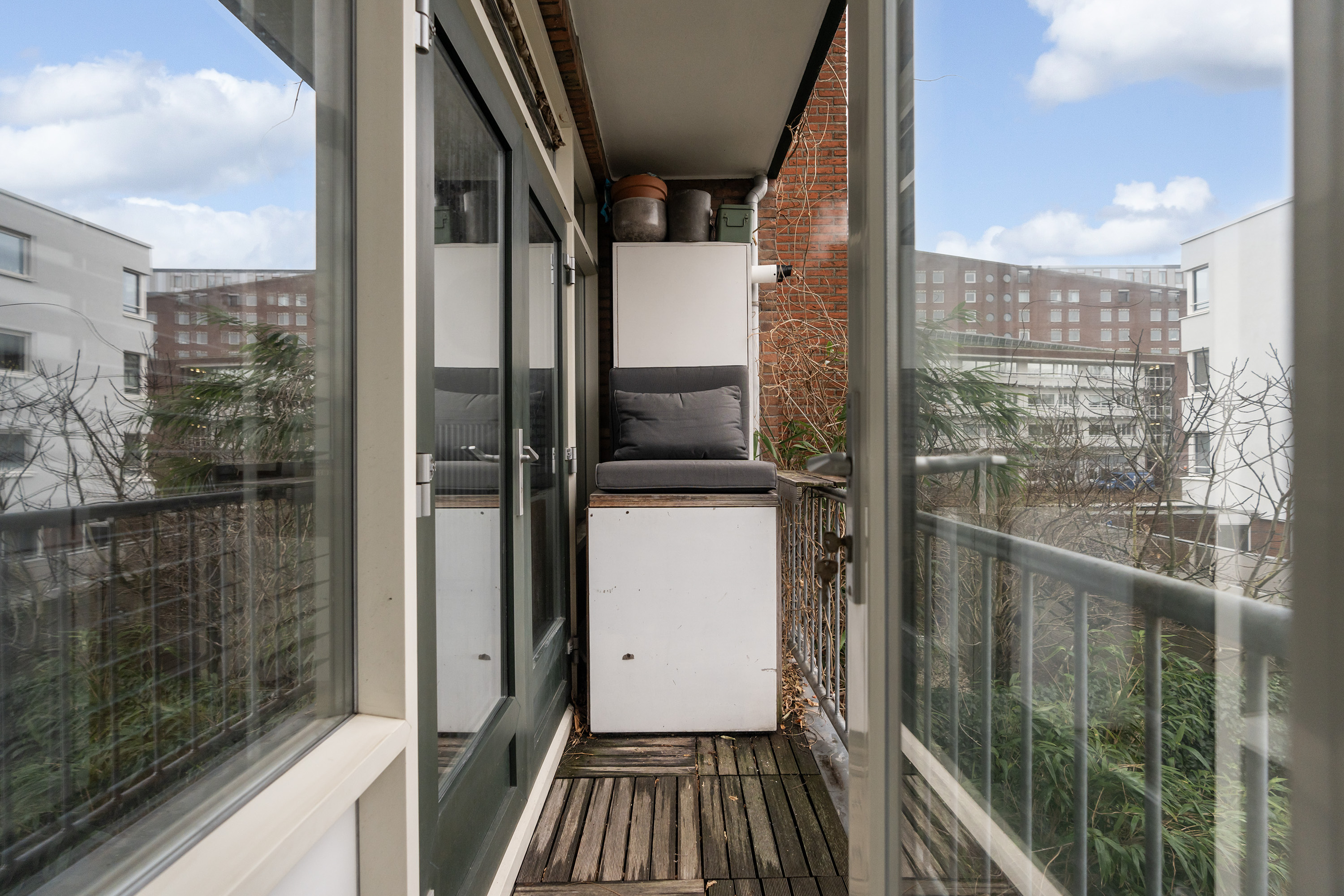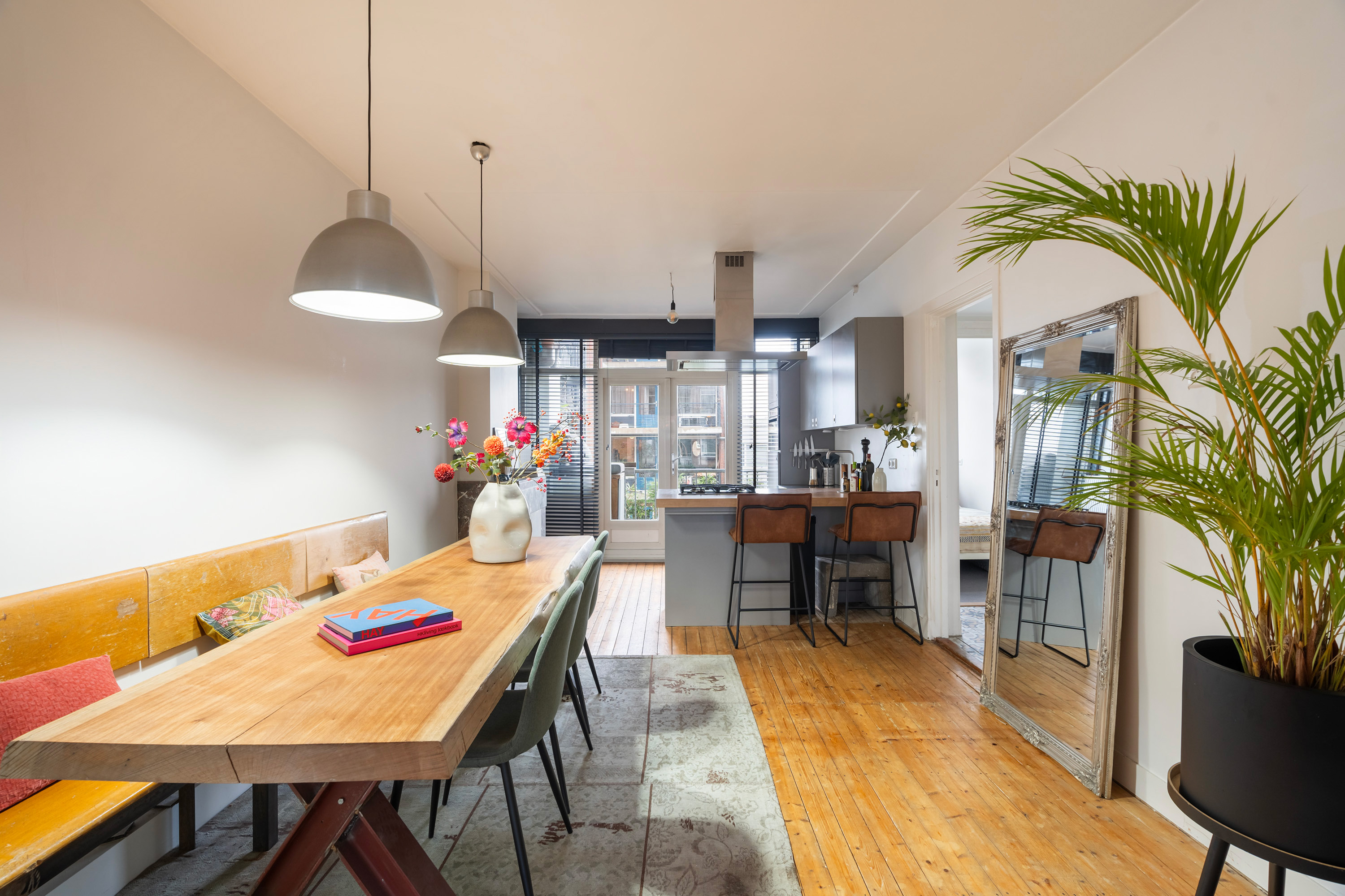 Vanuit de eetkamer heb je toegang tot het balkon op het westen, gelegen aan de rustige binnenplaats. De perfecte plek in de middag- en avondzon!