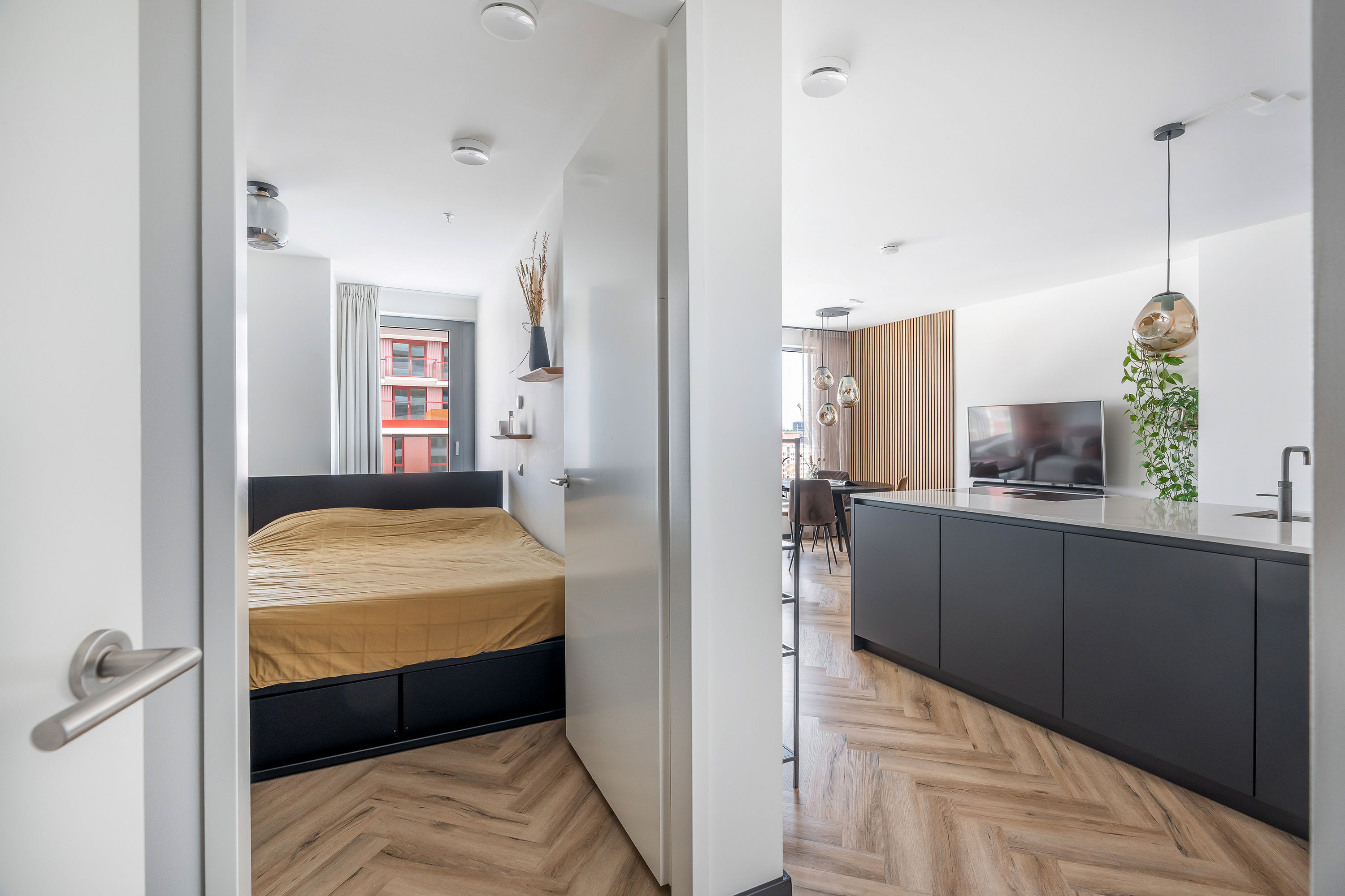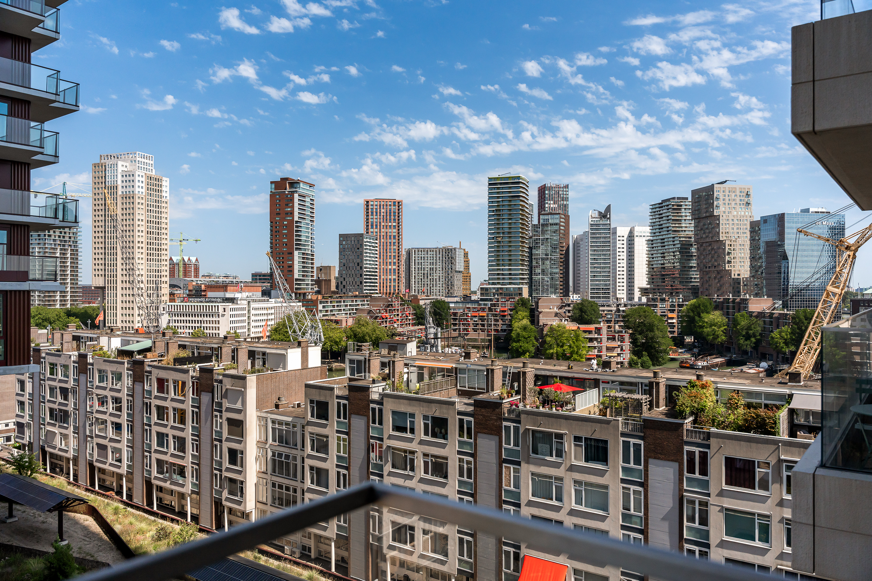 Living with a view, style, and serenity in the Heart of Vibrant Rotterdam. This fantastic one-bedroom apartment on the 10th floor of the Cooltoren combines the best of both worlds: serene tranquility and spectacular views, right in the midst of the city’s bustling center. Enjoy the comfort of new construction (2022), a beautifully finished modern home, and a spacious outdoor area where the city skyline surprises you anew each day. The elegant herringbone floor, the sleek kitchen island with Quooker tap, and the abundance of natural light create a bright, modern atmosphere throughout. A dream home for anyone looking for a high-quality, move-in-ready apartment with every imaginable amenity within easy reach.