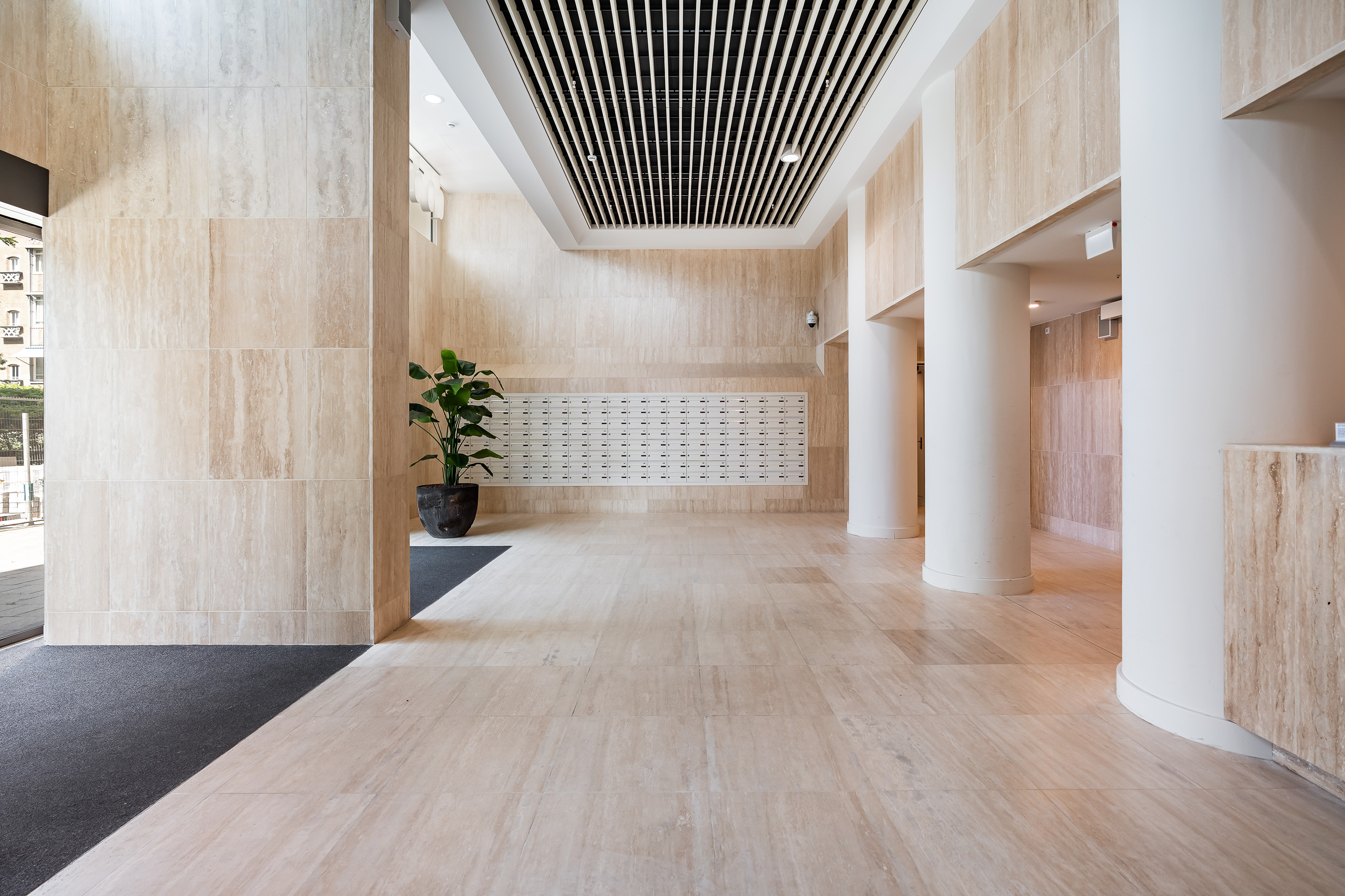 Via de stijlvolle entree met natuurstenen afwerking kom je binnen in de indrukwekkende lobby van de Cooltoren. Hier word je dagelijks van 08:00 tot 20:00 uur vriendelijk verwelkomd door de servicemanagers. De hal is voorzien van een videofooninstallatie, Bringme Box, brievenbussen en meerdere liften. Bovenop de parkeergarage bevindt zich een prachtig aangelegde gemeenschappelijke daktuin, een groene en rustige plek exclusief voor bewoners.