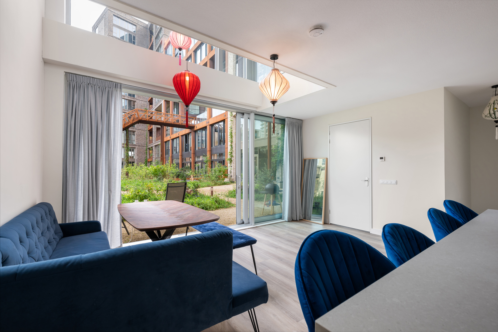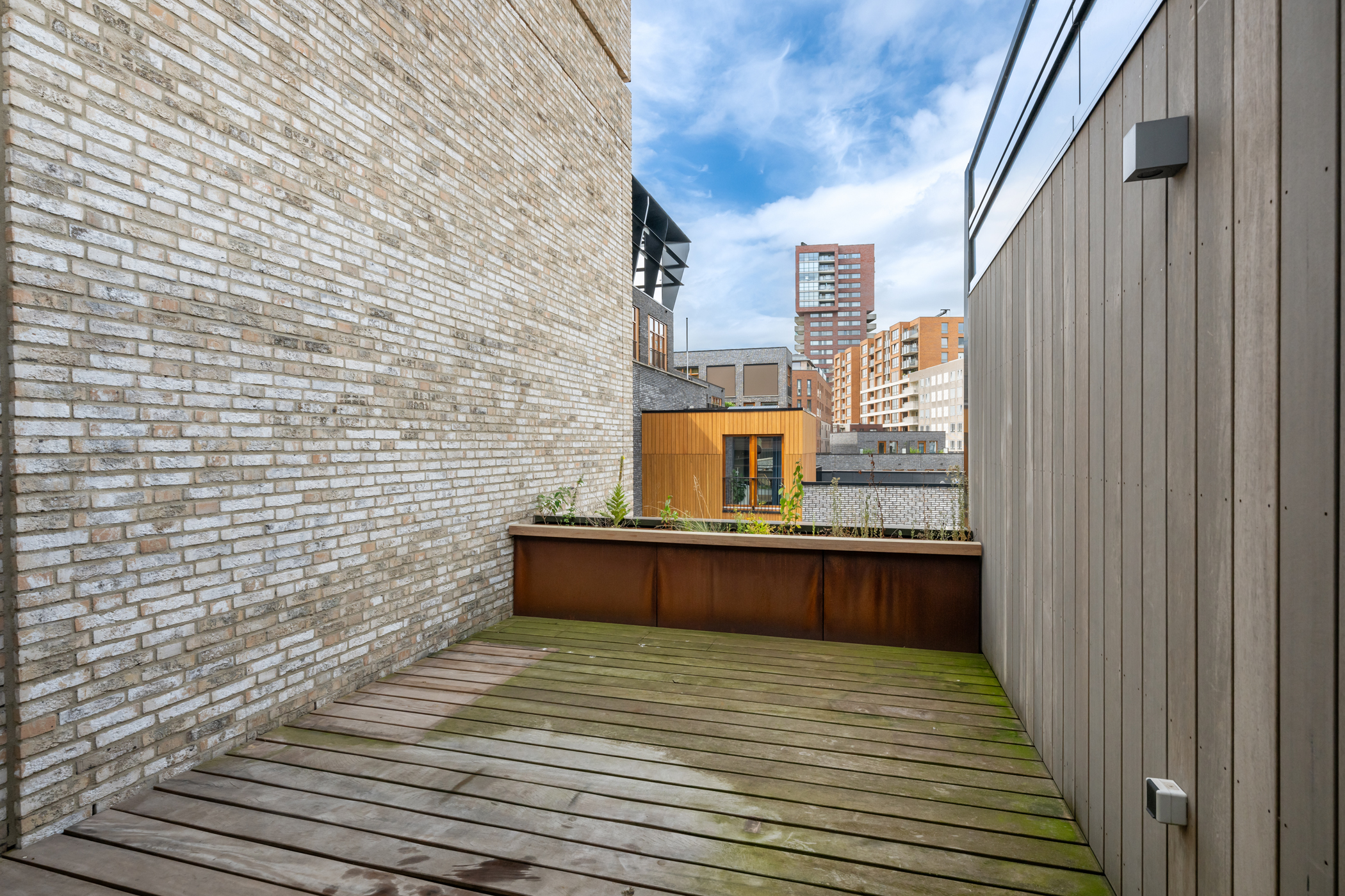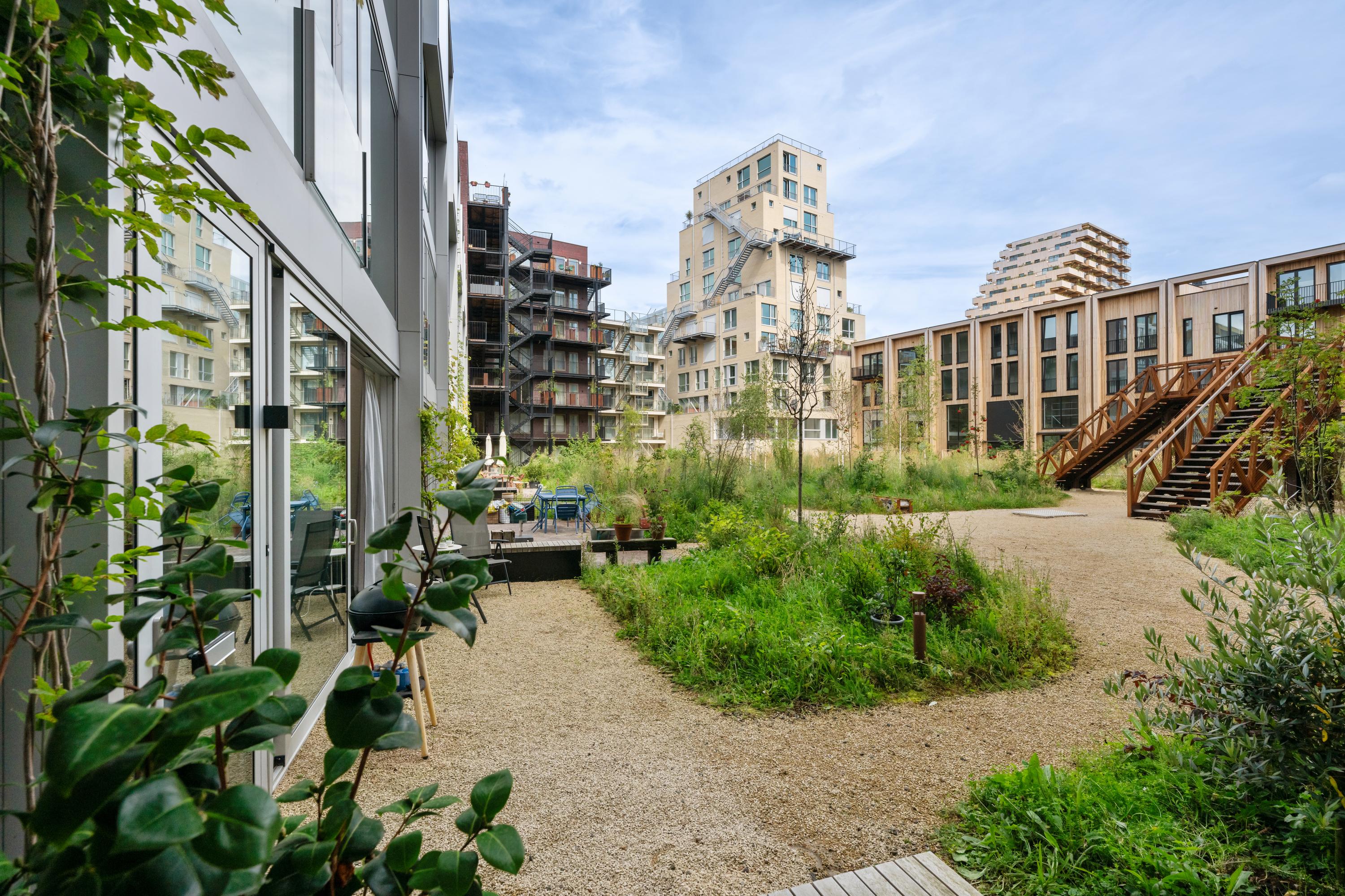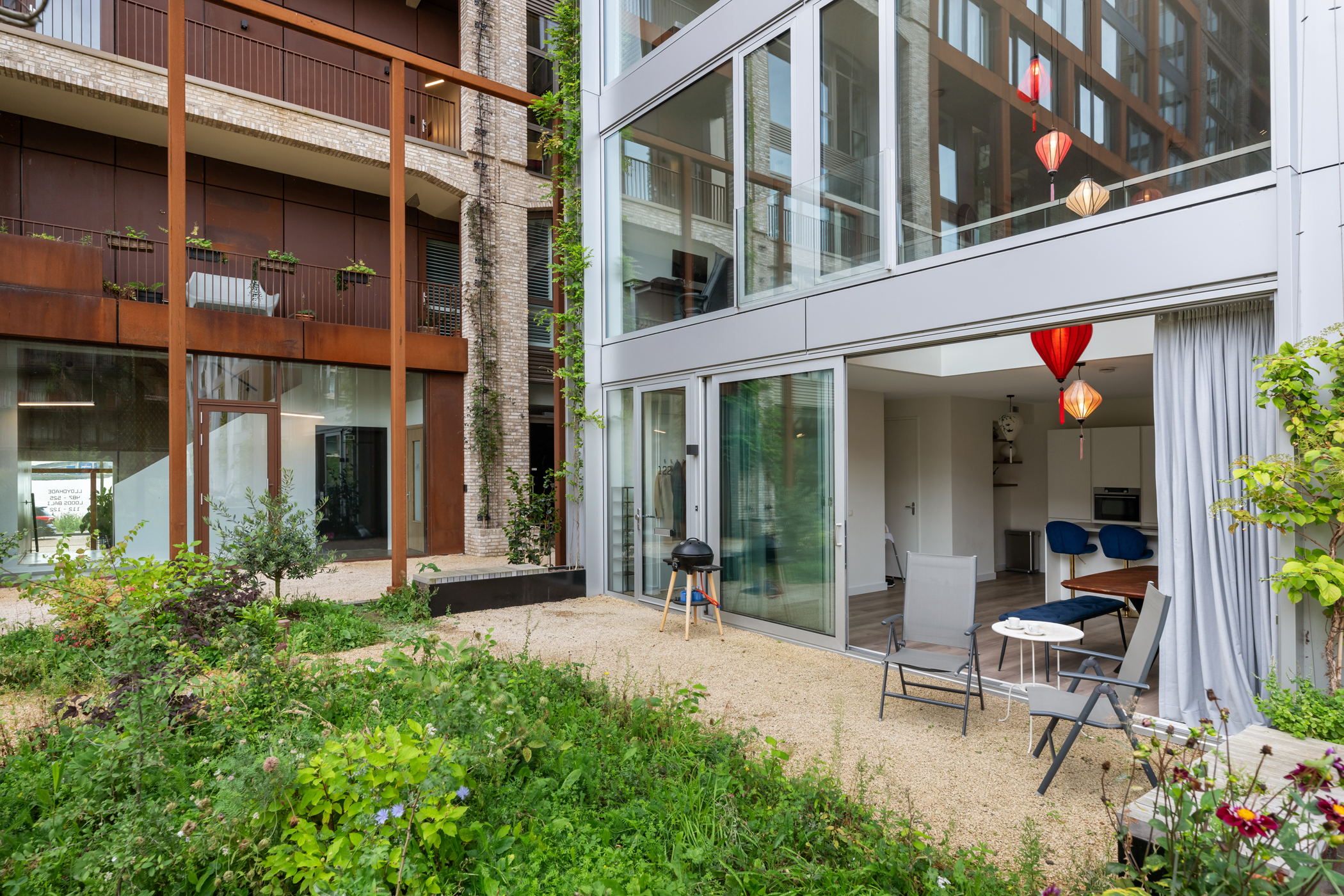 De kers op de taart is het royale en zonnige terras van ca. 16 m² op het zuidwesten. Hier geniet je tot laat van de zon en het uitzicht over de groene, levendige binnentuin van het Lloydkwartier. Het perfecte plekje voor een goed glas wijn, een diner in de buitenlucht of gewoon een ontspannen middag met een boek.