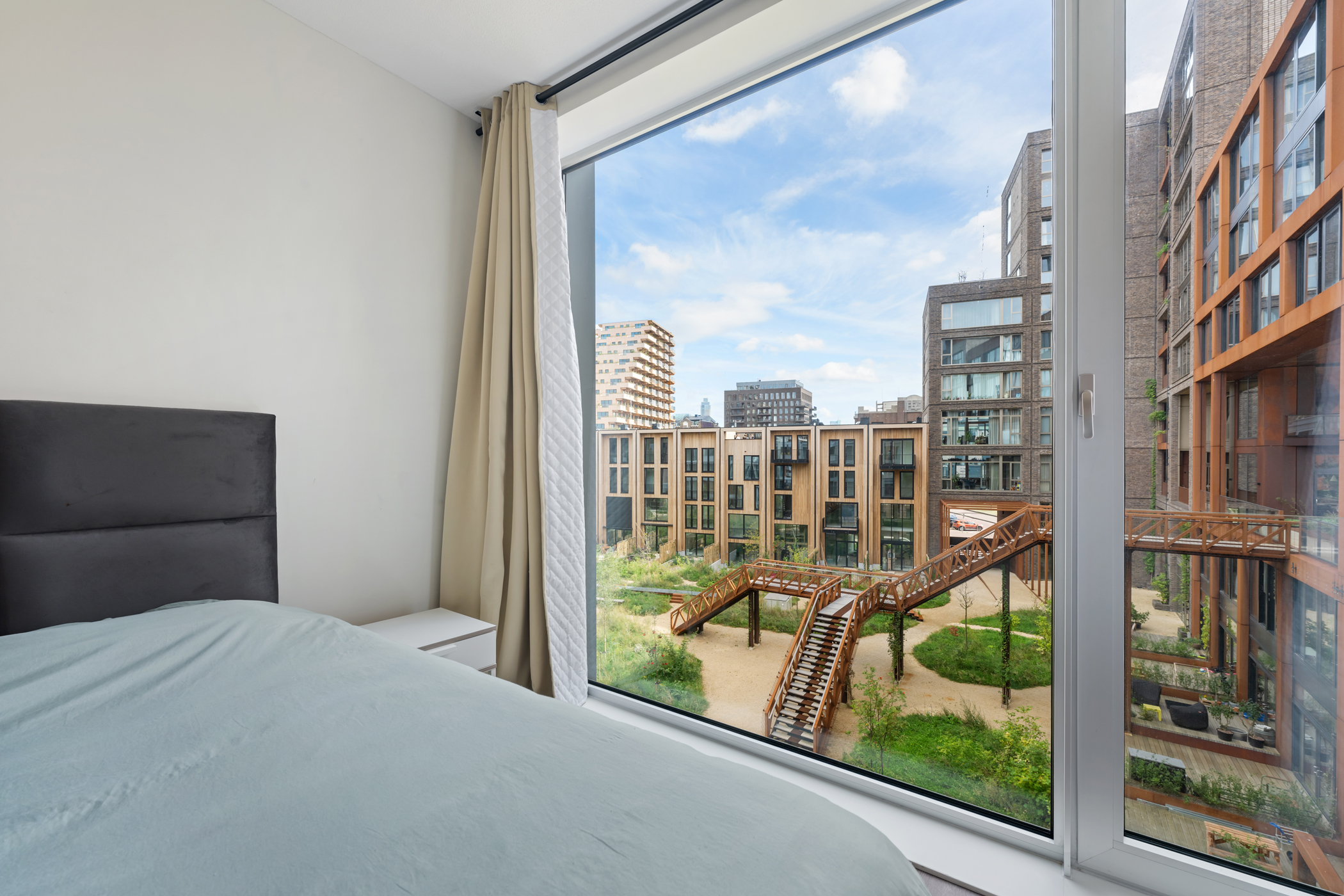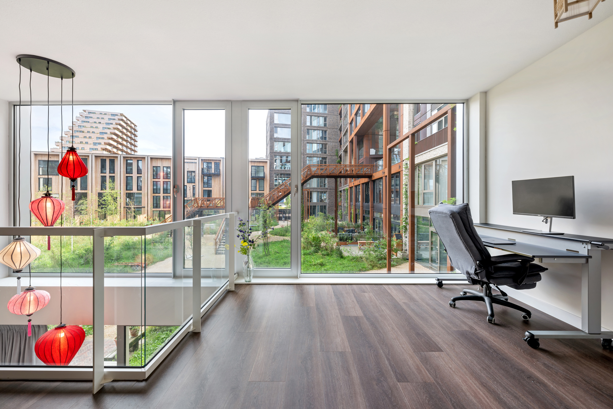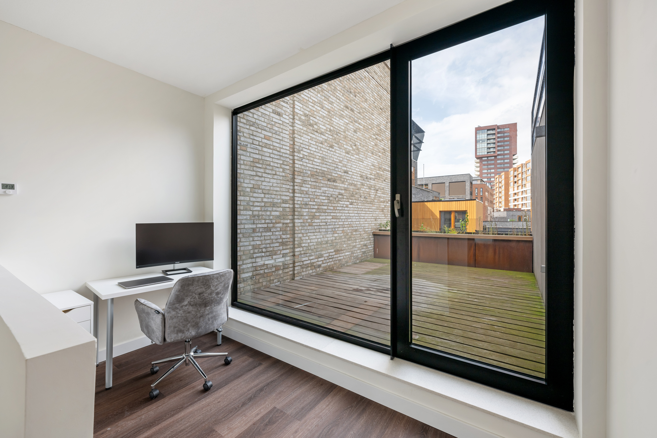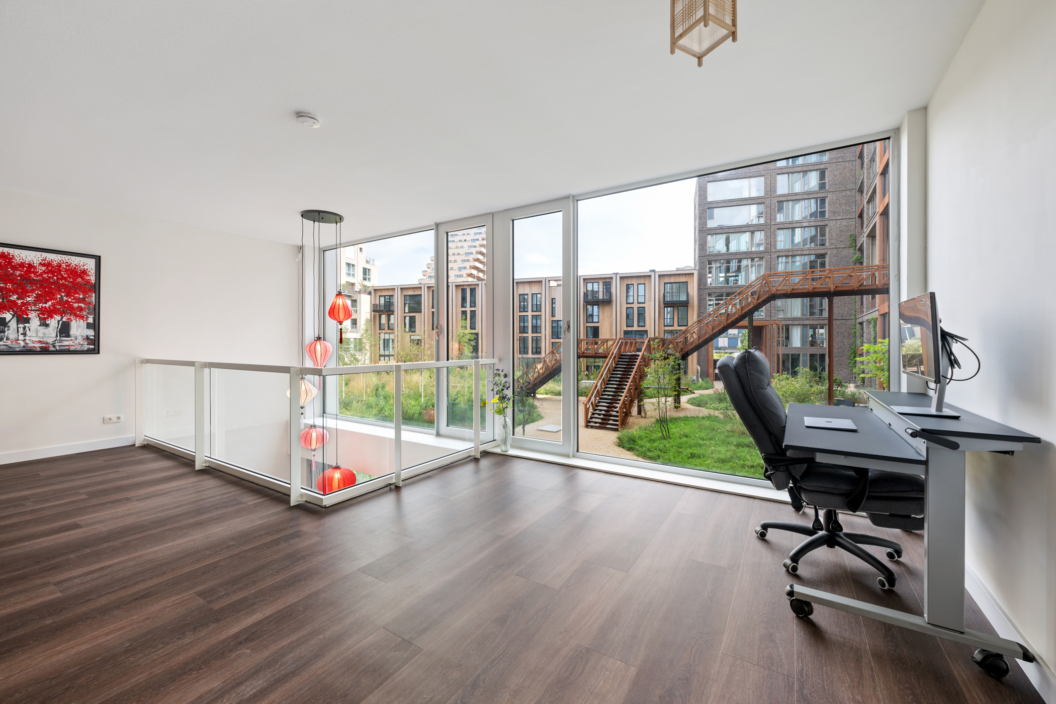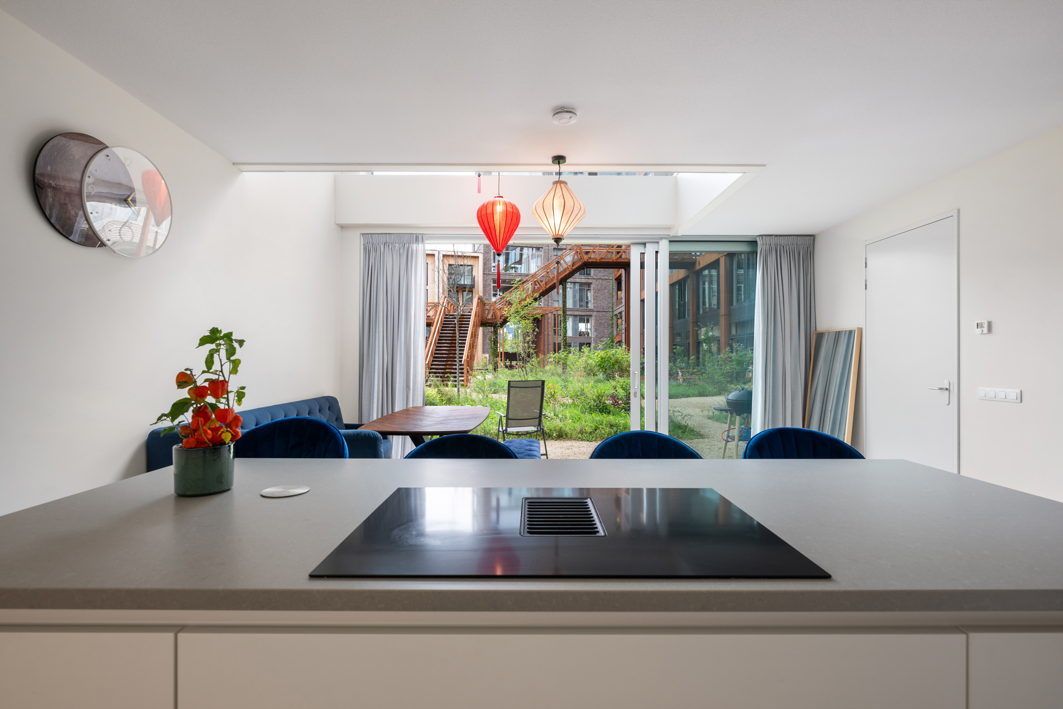 De kers op de taart is het royale en zonnige terras van ca. 16 m² op het zuidwesten. Hier geniet je tot laat van de zon en het uitzicht over de groene, levendige binnentuin van het Lloydkwartier. Het perfecte plekje voor een goed glas wijn, een diner in de buitenlucht of gewoon een ontspannen middag met een boek.