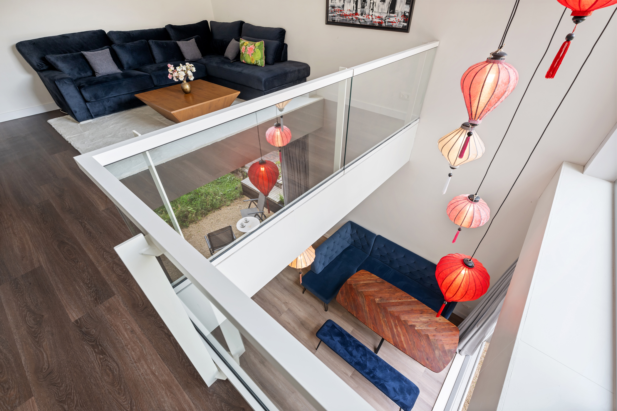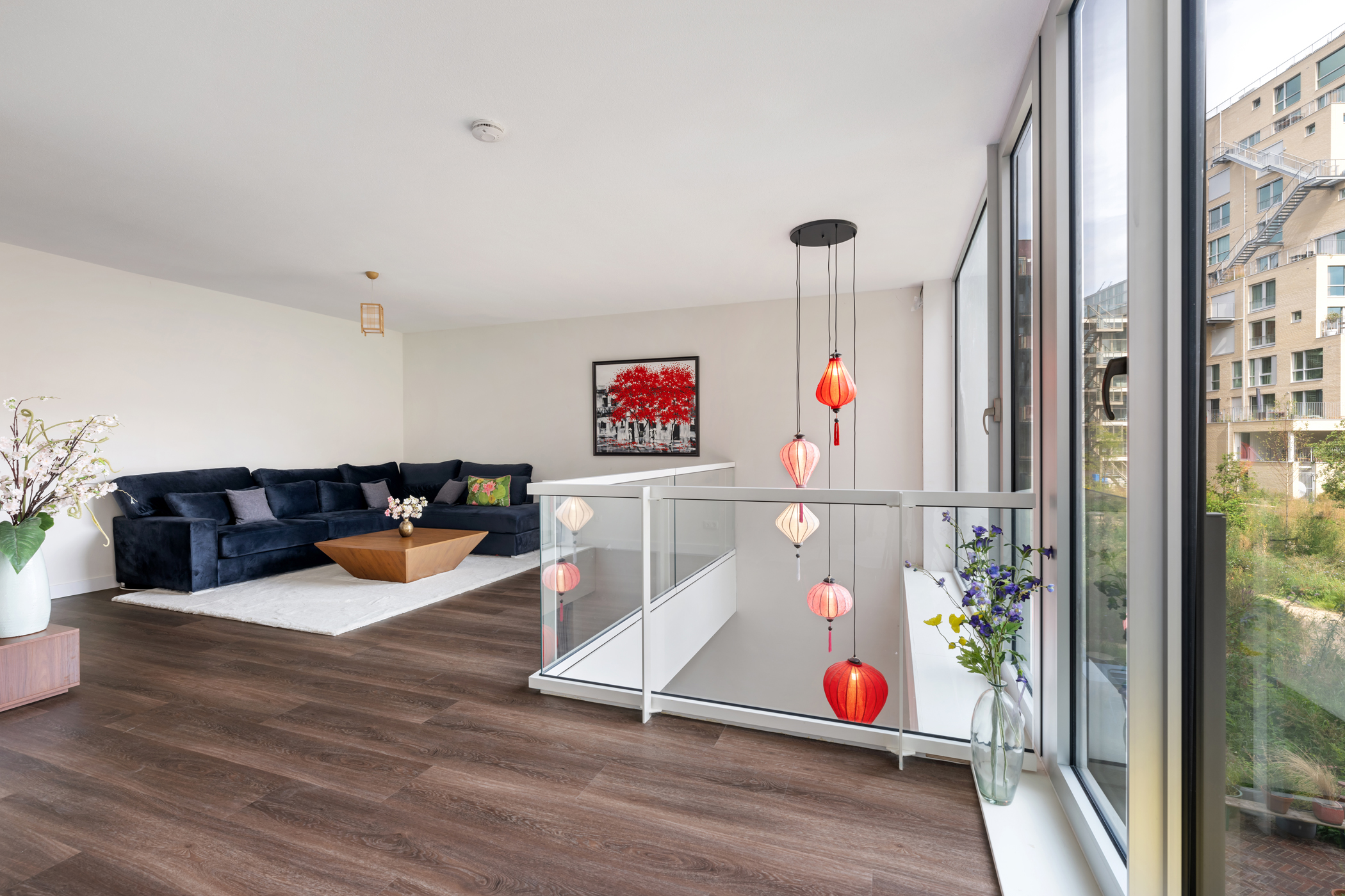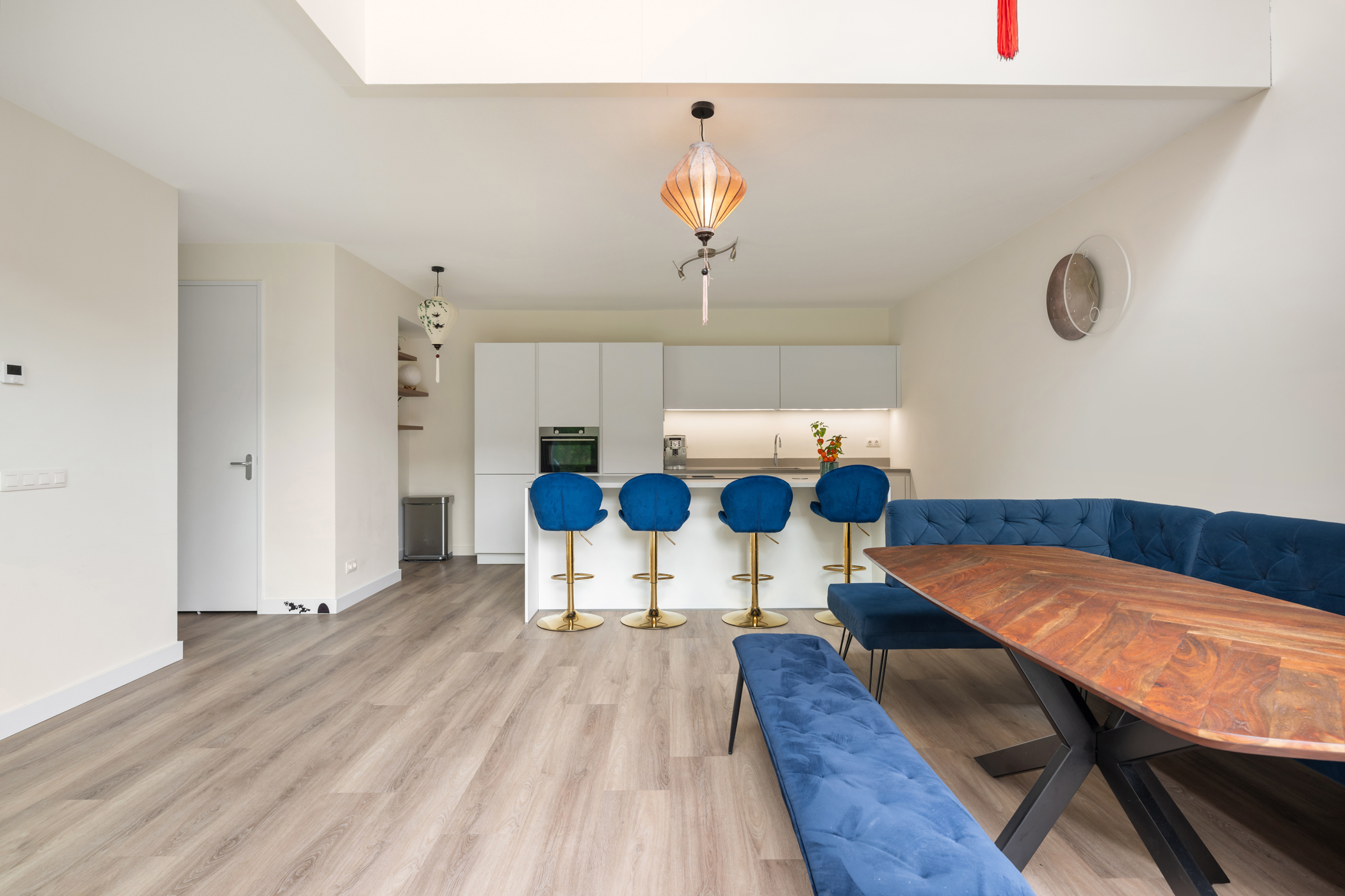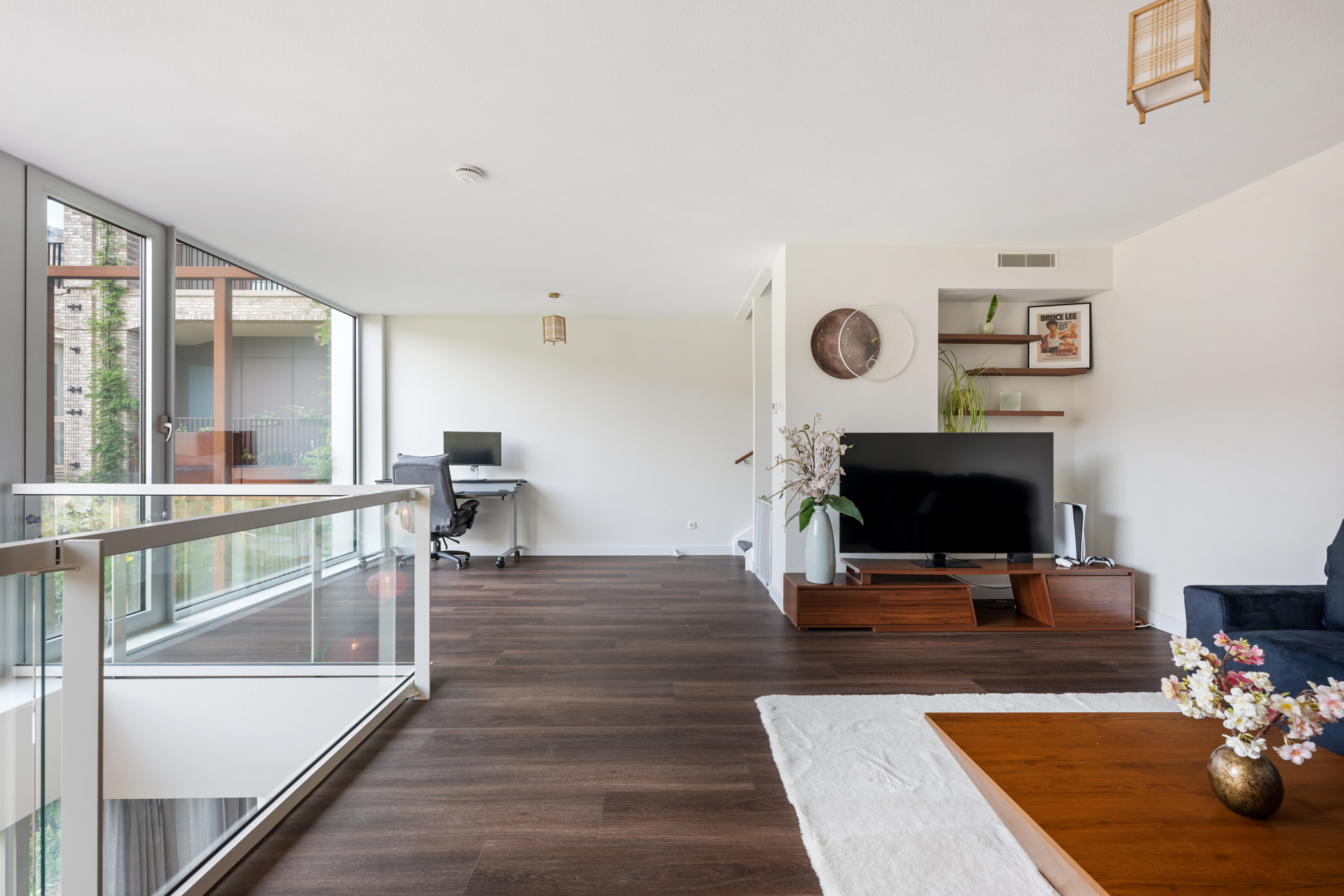 Op de eerste verdieping wacht een prachtige living met vide, waardoor de ruimte extra hoog en open aanvoelt. De plafondhoogte van ca. 2,64 meter en de zichtlijn naar de keuken geven een gevoel van verbondenheid tussen de verdiepingen. Deze royale woonkamer biedt volop ruimte voor een comfortabele zithoek én eventueel een werkplek. Een heerlijke plek om tot rust te komen of vrienden te ontvangen.