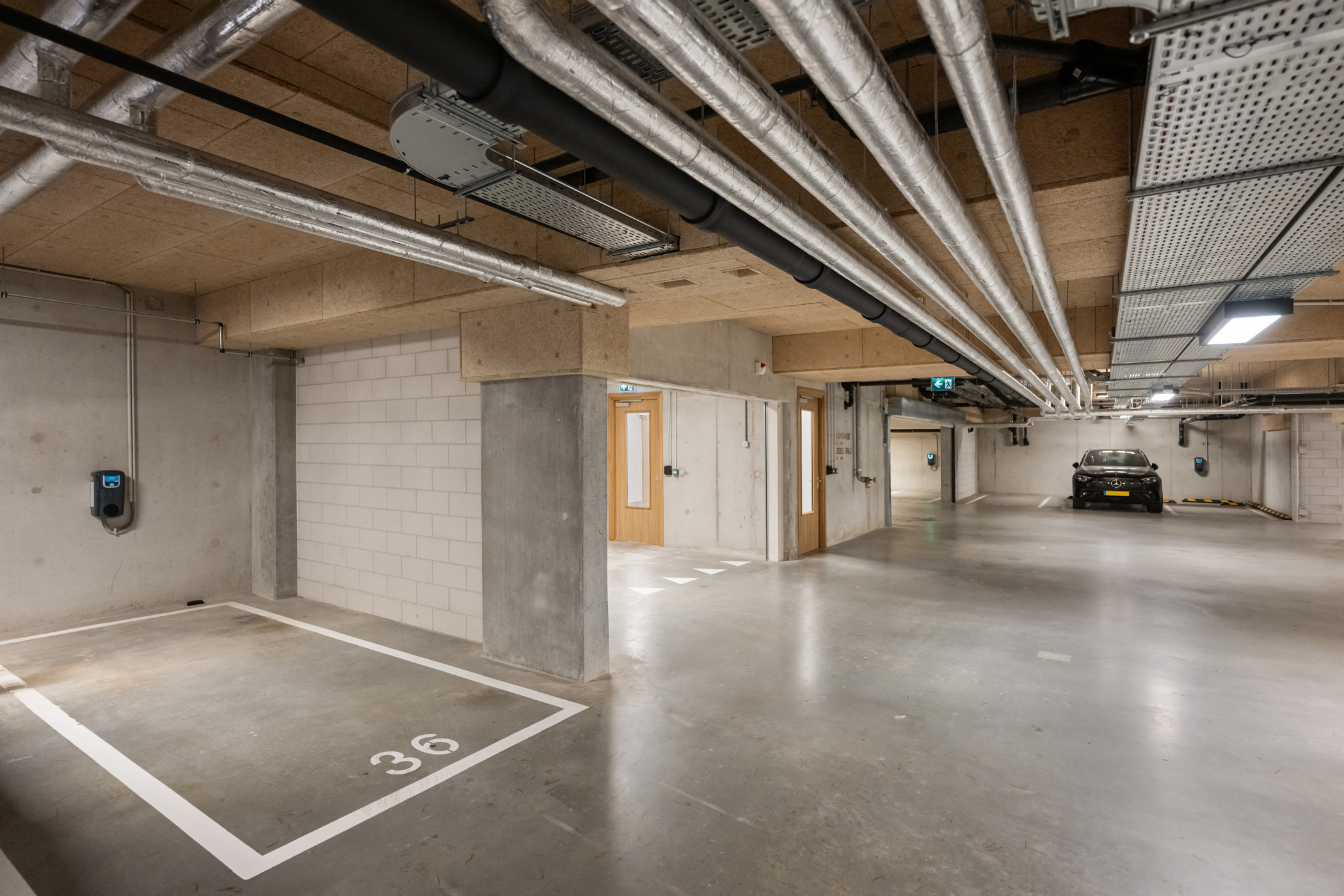 Er is een eigen parkeerplaats met laadpaal in ondergelegen parkeerkelder, deze wordt los aangeboden voor €35.000,-