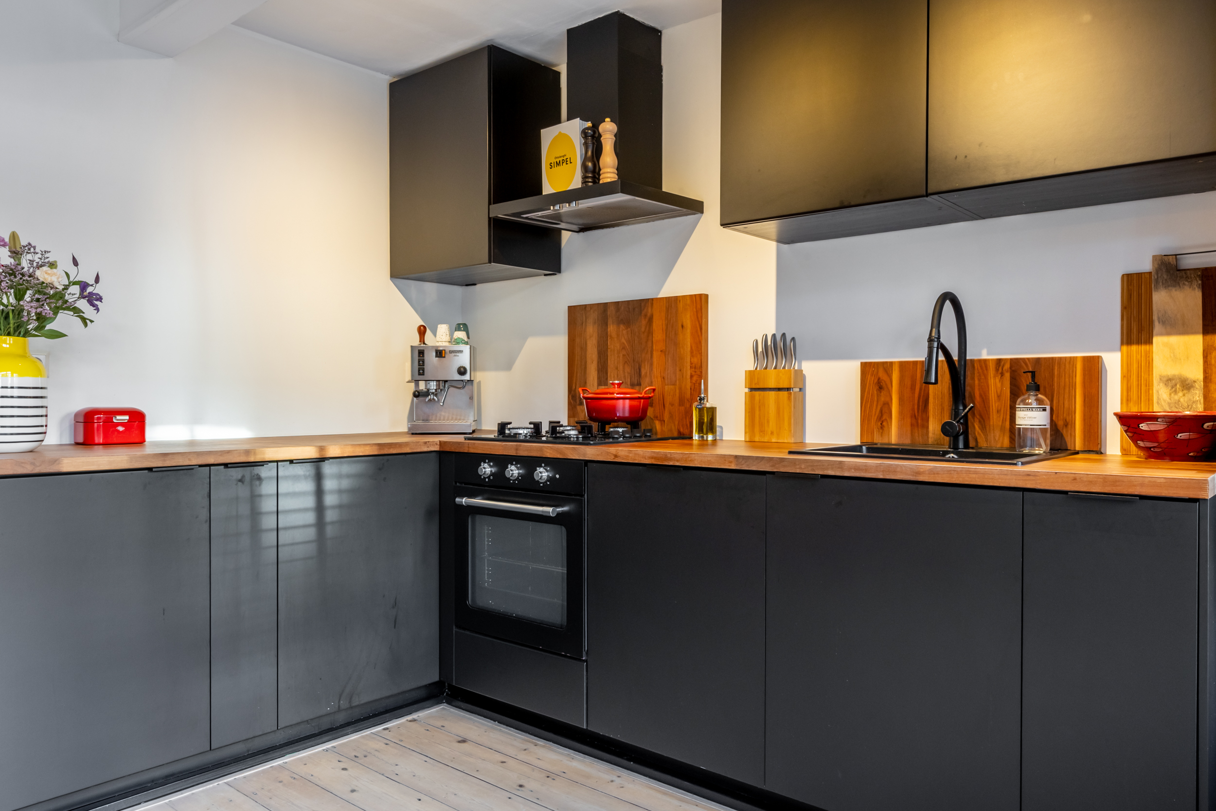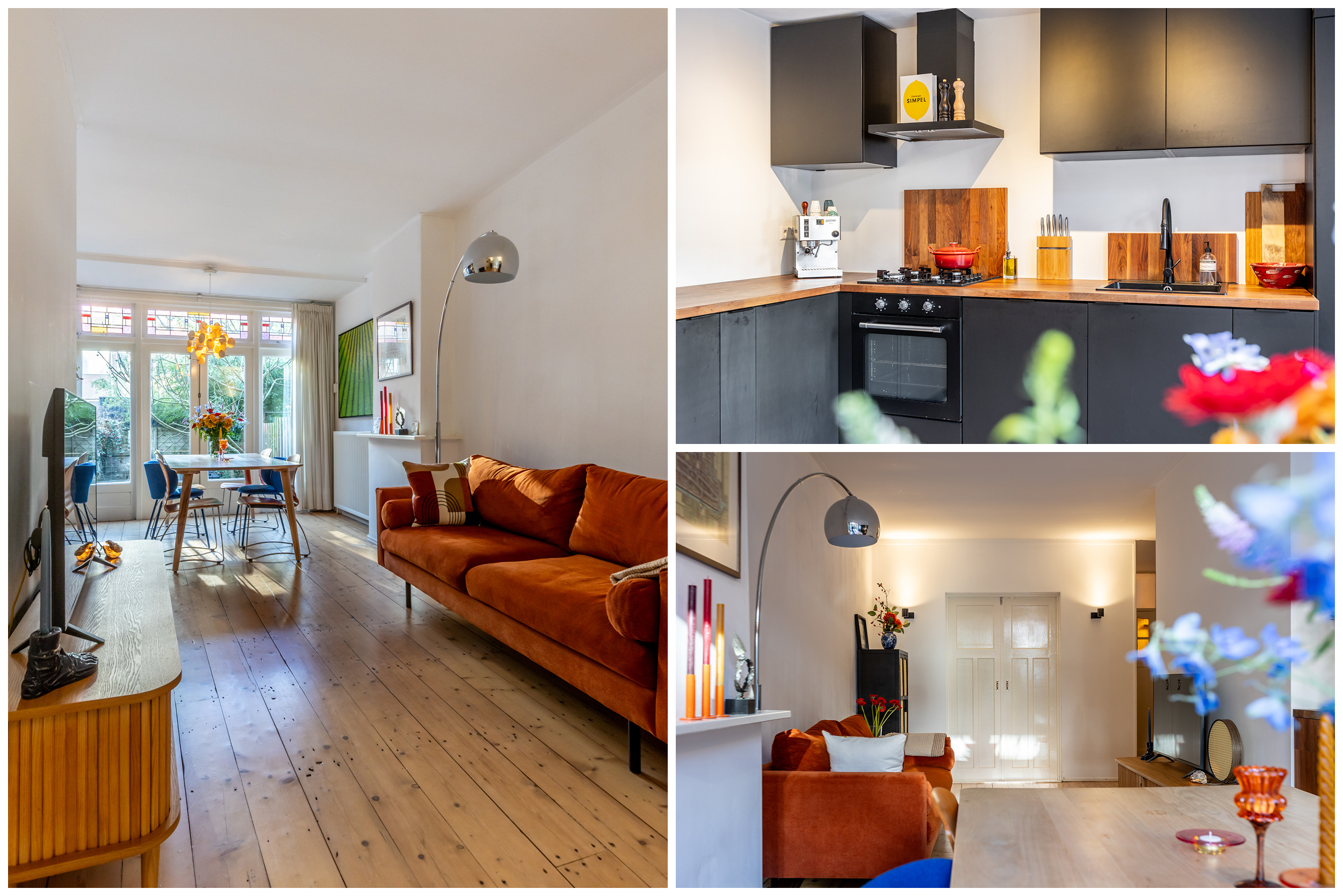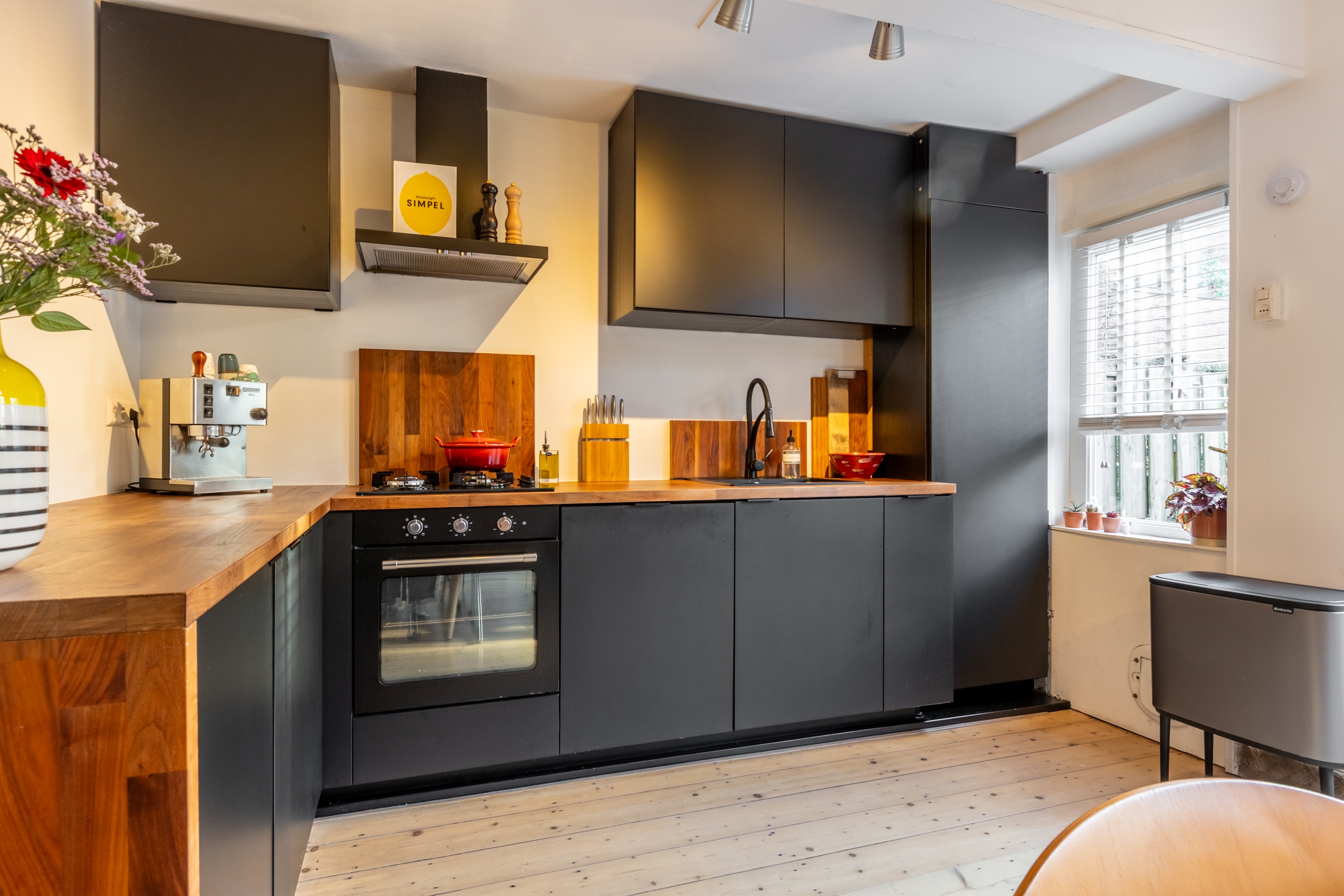 Via de entree betreed je de ruim opgezette living. Een uitnodigende leefruimte met een warme, huiselijke sfeer dankzij de prachtige houten vloer en de originele glas-in-looddetails. Het knusse zitgedeelte vormt het hart van de ruimte en loopt vloeiend over in het eetgedeelte en de open keuken aan de achterzijde van de woning. Het dagelijkse leven ontvouwt zich hier in een natuurlijke flow van koken, samen eten en ontspannen genieten. De keuken is uitgerust met een 4-pits gasfornuis met oven, afzuigkap, koelkast en vaatwasser. Alles wat je nodig hebt om met plezier te koken!