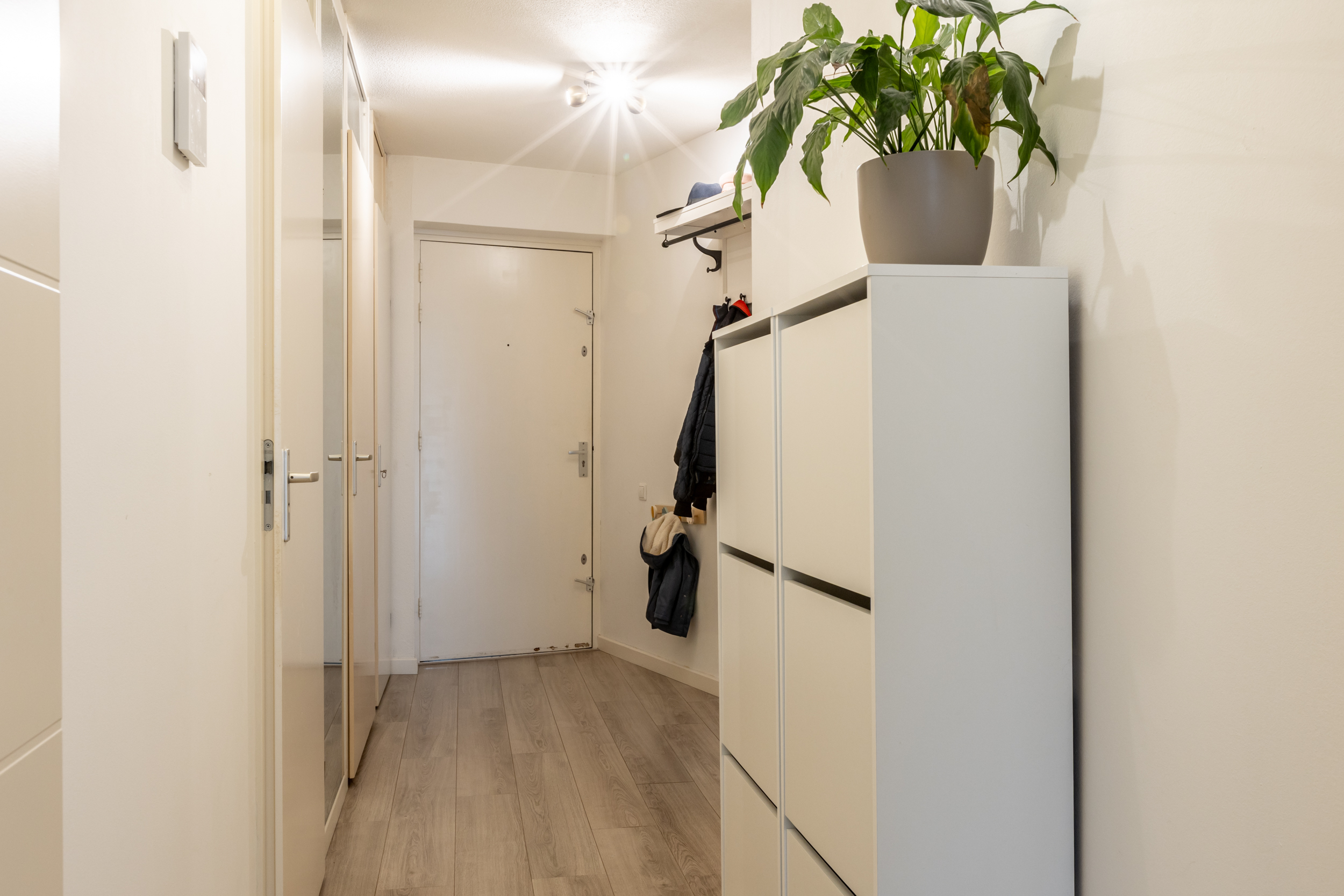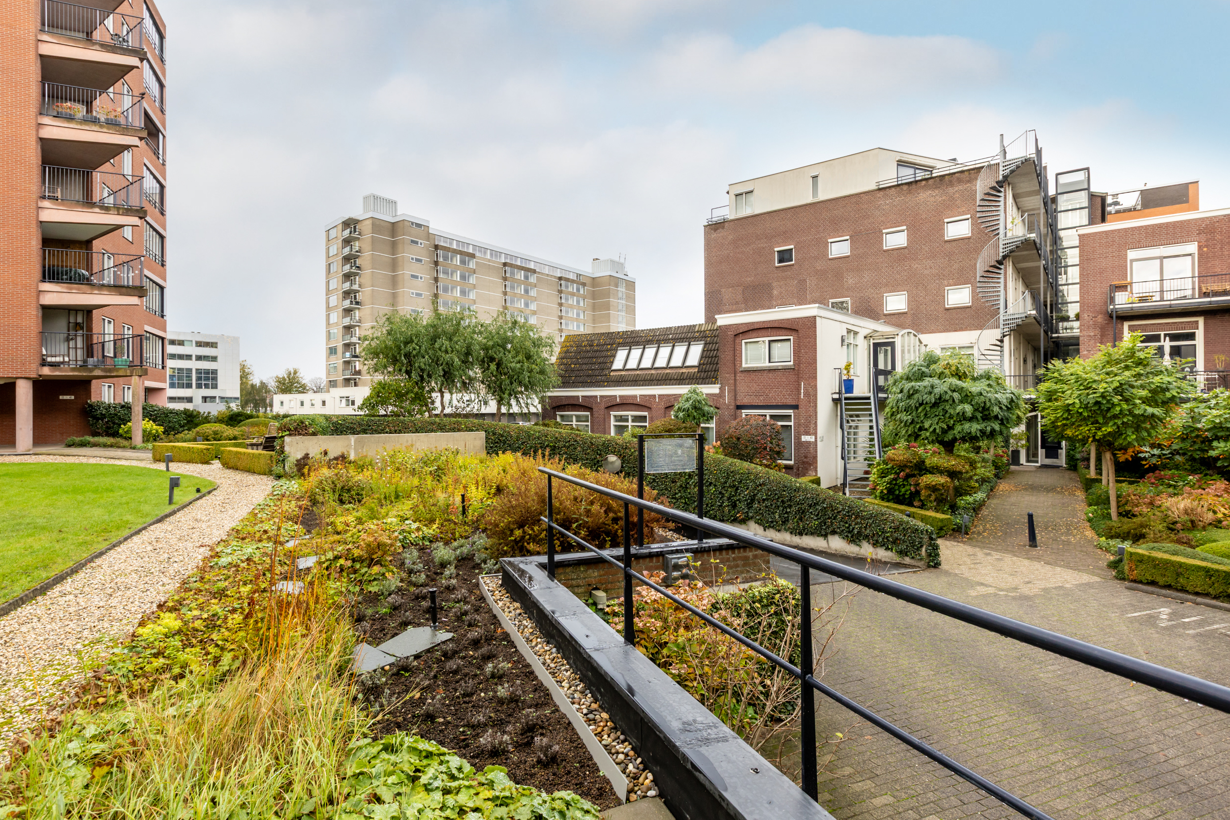 Via de gemeenschappelijke binnentuin is het complex te bereiken. Zo bevind je je direct in een oase van groen en rust. Wat een verrassing! De nette, afgesloten centrale entreehal biedt toegang tot de brievenbussen, het bellentableau, het trappenhuis en de lift.