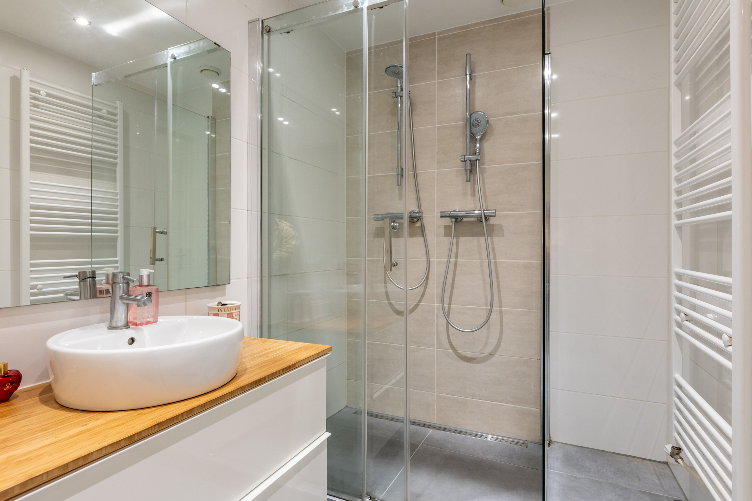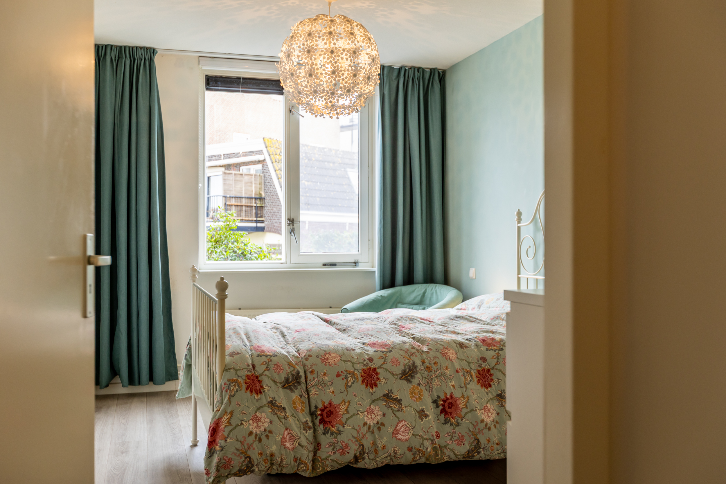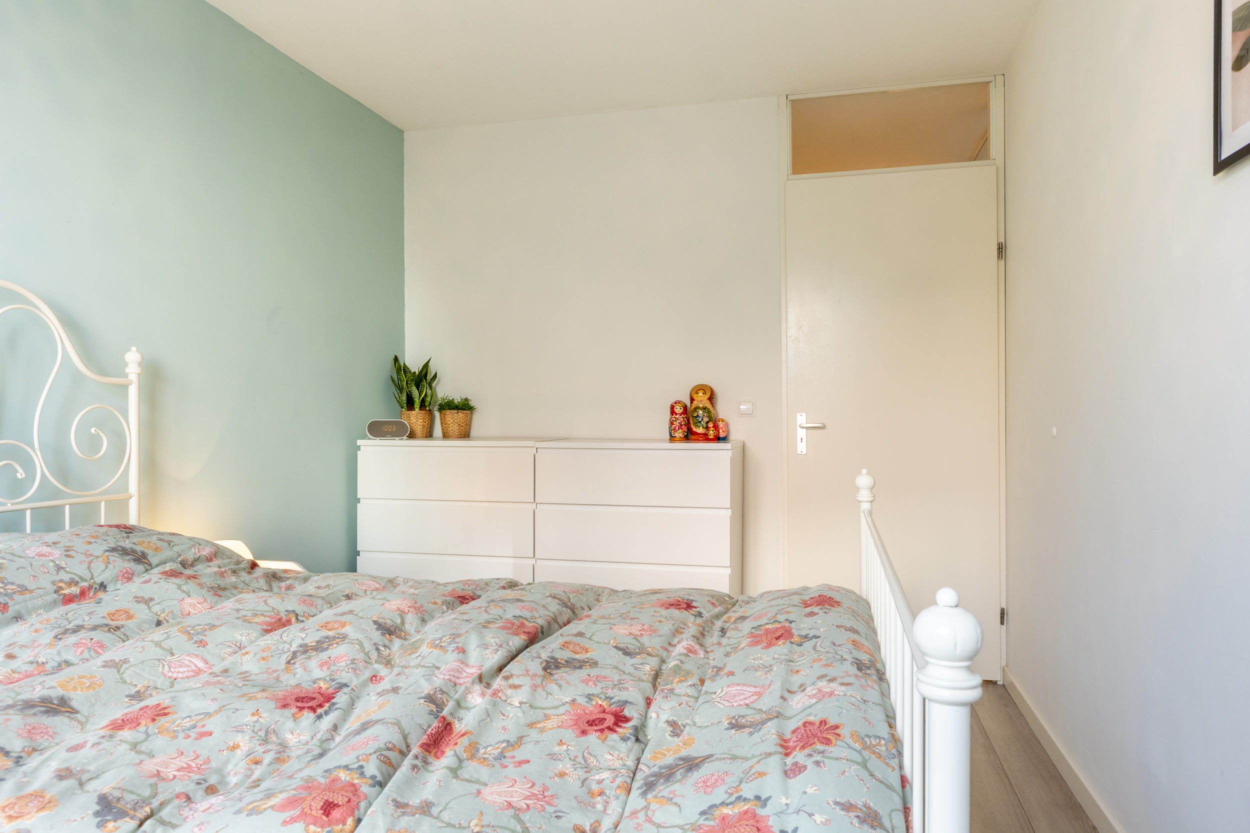 De woning beschikt over twee opvallend diepe slaapkamers om geheel naar eigen wens in te richten. De badkamer is volledig betegeld en straalt door de lichte kleuren één en al rust uit. Verder is de badkamer uitgerust met een ligbad, douchecabine, wastafel met meubel, handdoekradiator en vloerverwarming. In de entree bevinden zich een separaat toilet met fonteintje, een praktische inpandige berging met een aansluiting voor de wasmachine en droger, en de meterkast.
