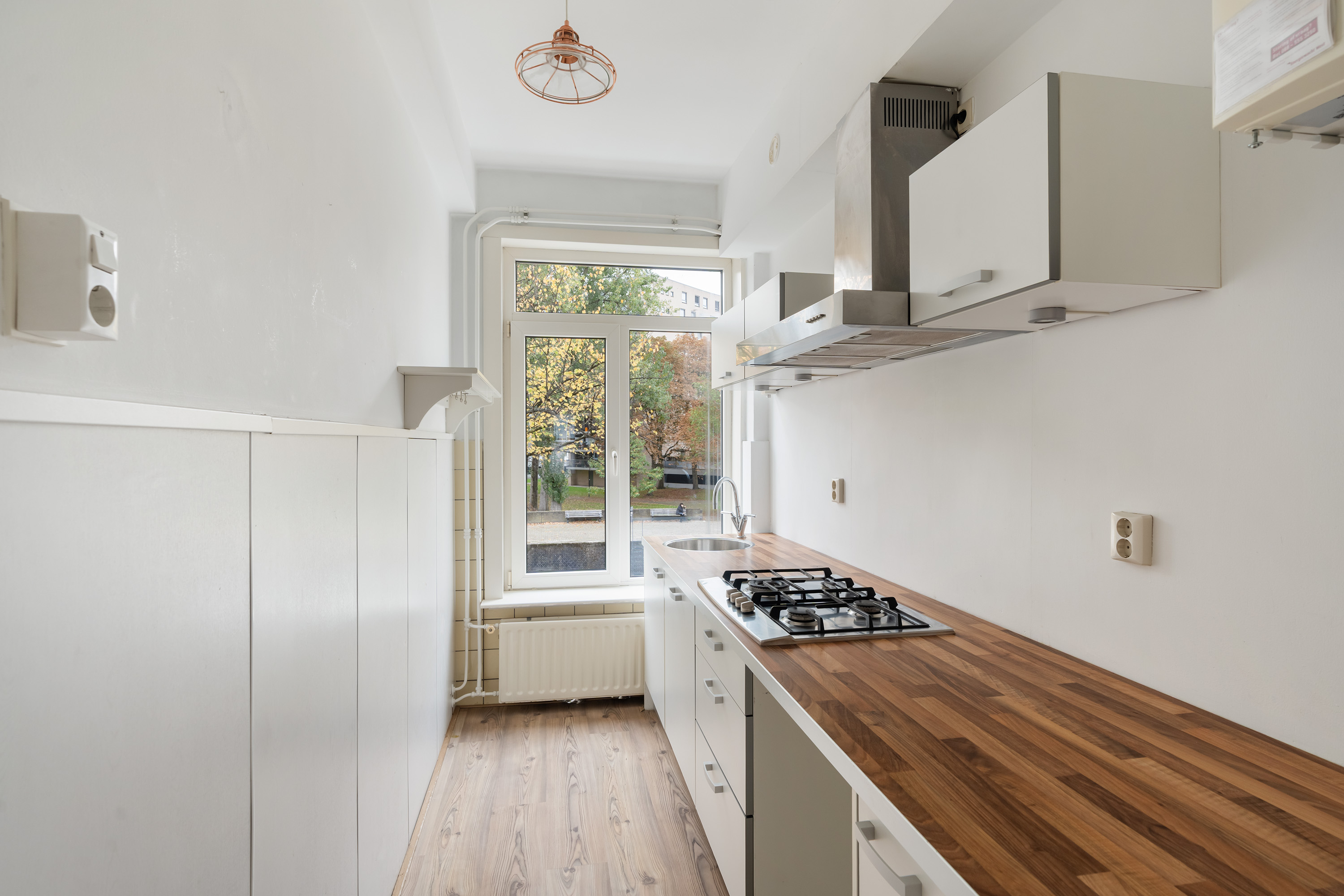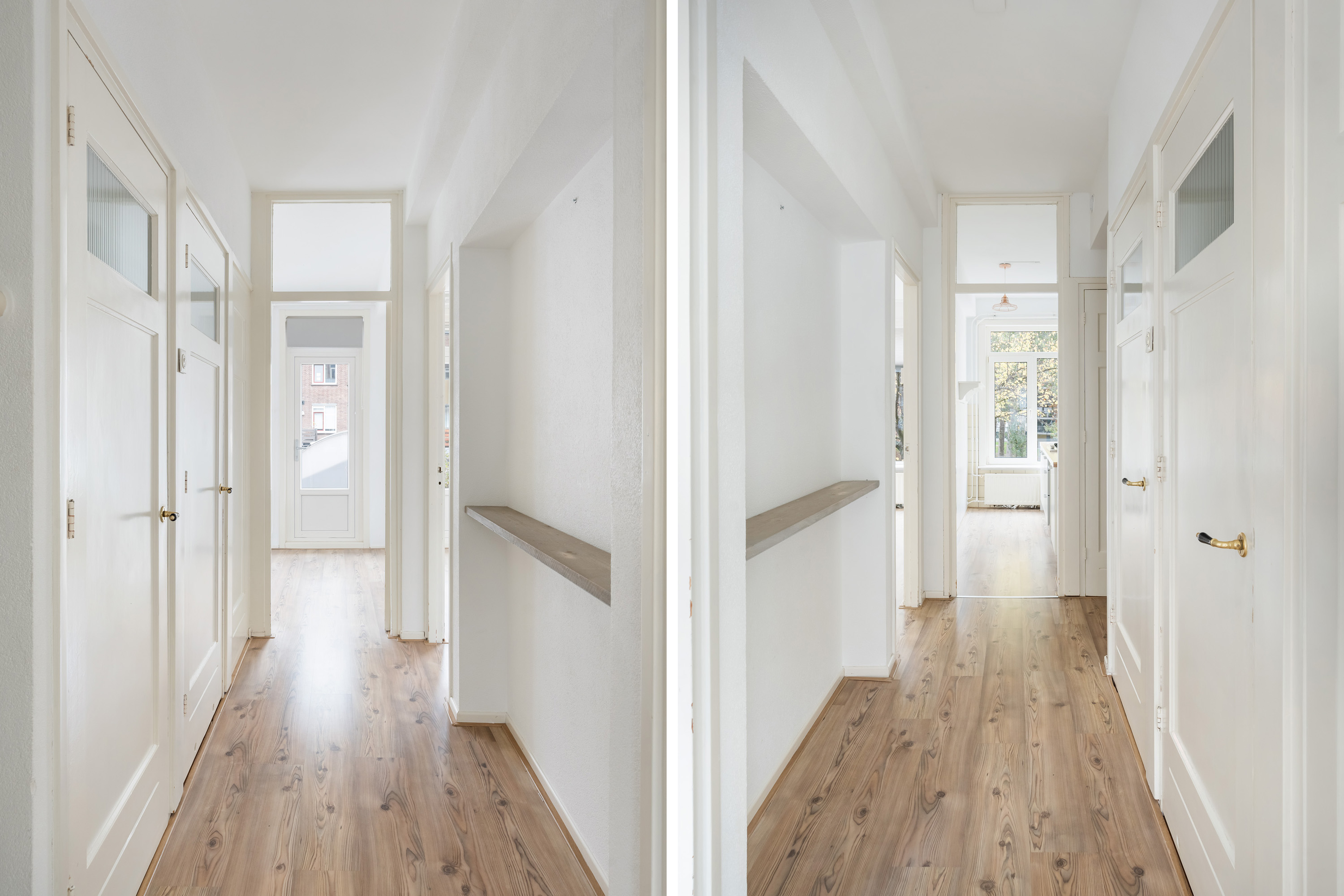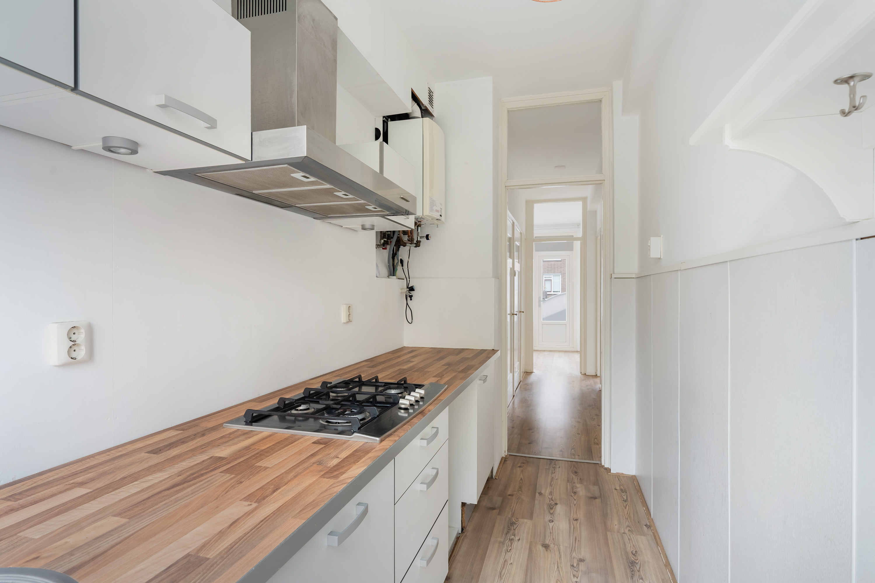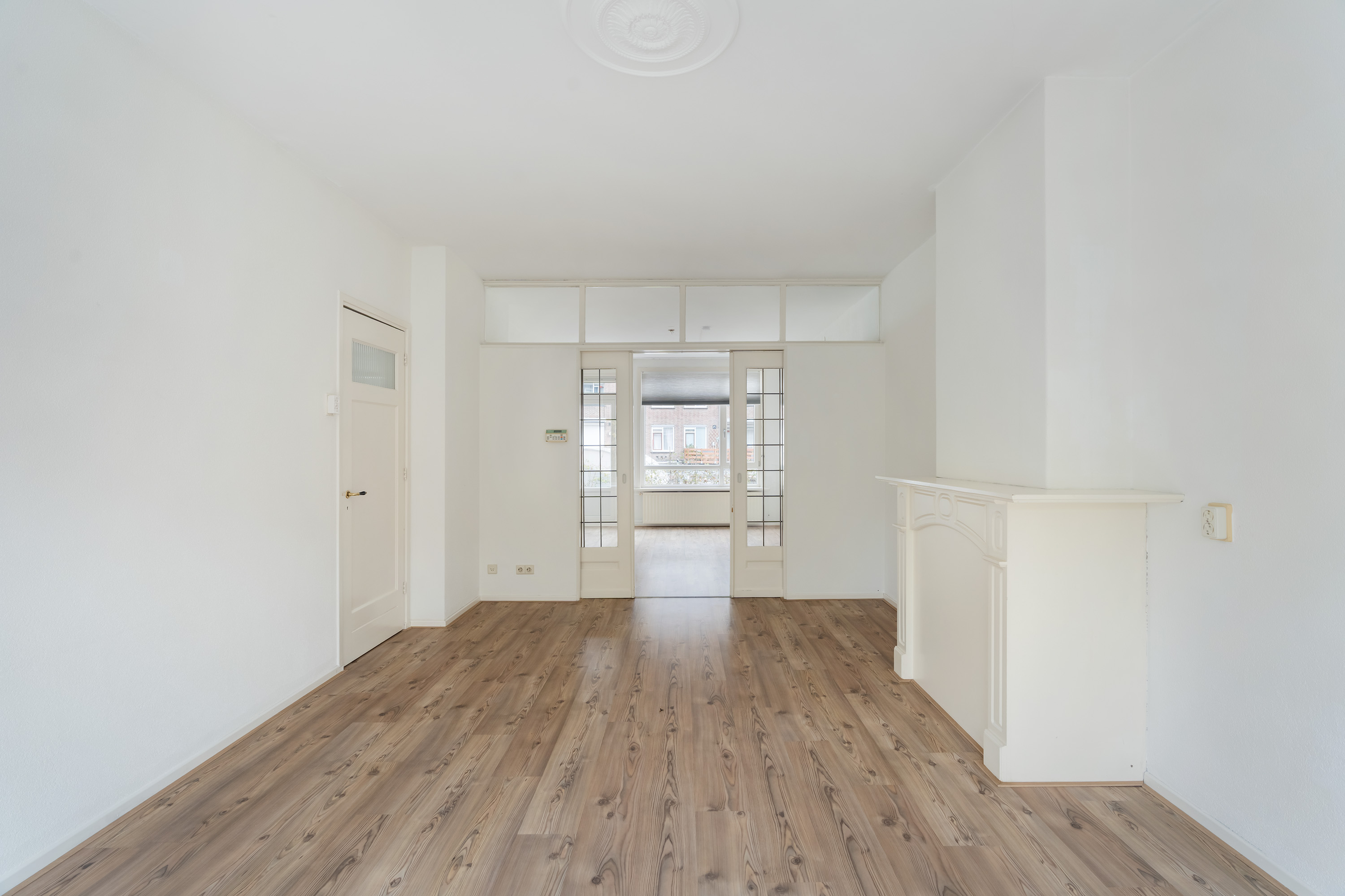Binnenkomst in de entree met toegang tot de verschillende vertrekken. De leefruimte strekt zich uit over de volledige lengte van de woning, waardoor er een bijzonder ruimtelijk en licht gevoel ontstaat. Dit wordt prachtig aangevuld met de charme van authentieke details, zoals de en suite deuren met glas-in-lood, de elegante schouw en de verfijnde plafondornamenten. Een karaktervolle ruimte waar het heerlijk thuiskomen is! De functionele indeling maakt het eenvoudig om de ruimte naar wens te verdelen in een zit- en eetgedeelte. Extra fijn: er is zelfs ruimte om een extra slaapkamer te realiseren! Aan de voorzijde is de afgesloten keuken gesitueerd en deze beschikt over van een 4-pits gasfornuis, afzuigkap, koelkast, vriezer, vaatwasser en een aansluiting voor de wasmachine. Tevens is de cv-opstelling hier gevestigd.