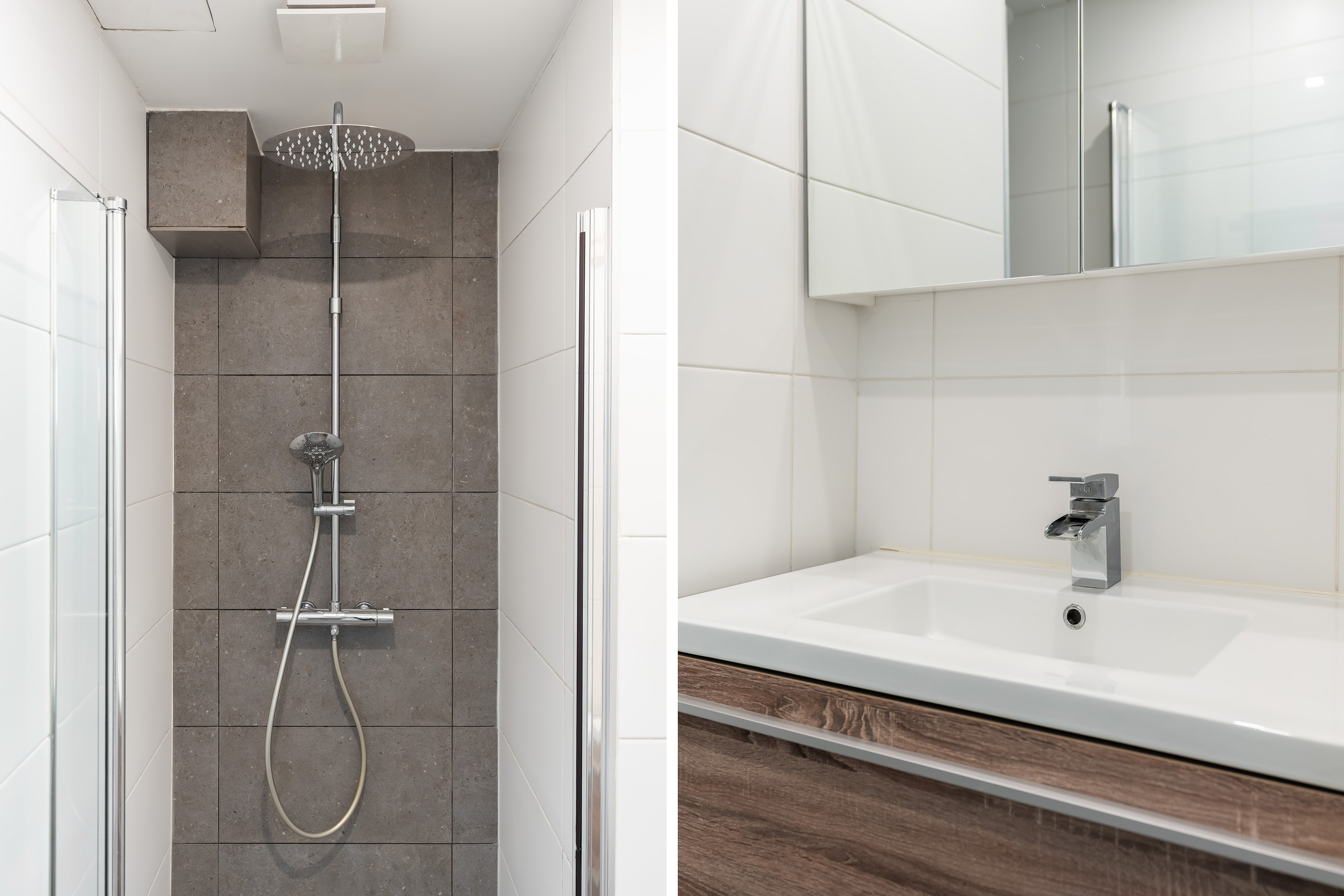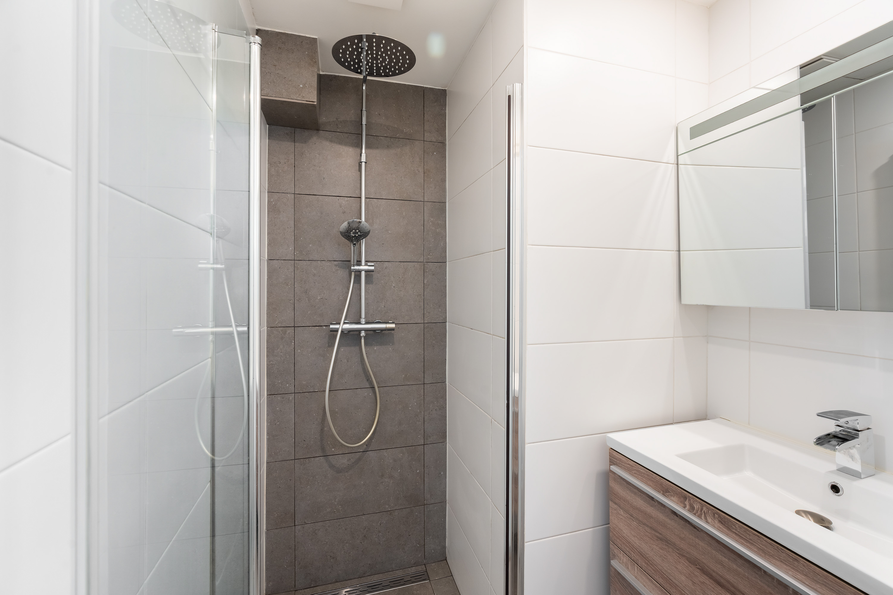 De slaapkamer aan de achterzijde is heerlijk licht en voorzien van een praktische inbouwkast. Vanuit zowel de slaapkamer als de living is het royale terras van circa 15 m2 gelegen op het oosten bereikbaar. Deze is voorzien van houten vlonders en maakt dit de ideale plek om buitenshuis te vertoeven. Jouw eigen zomer hotspot midden in de stad! Terug in de entree is de badkamer toegankelijk, die is uitgerust met een douchecabine met rainshower en een wastafel met meubel. Daarnaast bevindt zich in de entree het separate toilet met fonteintje en de meterkast.