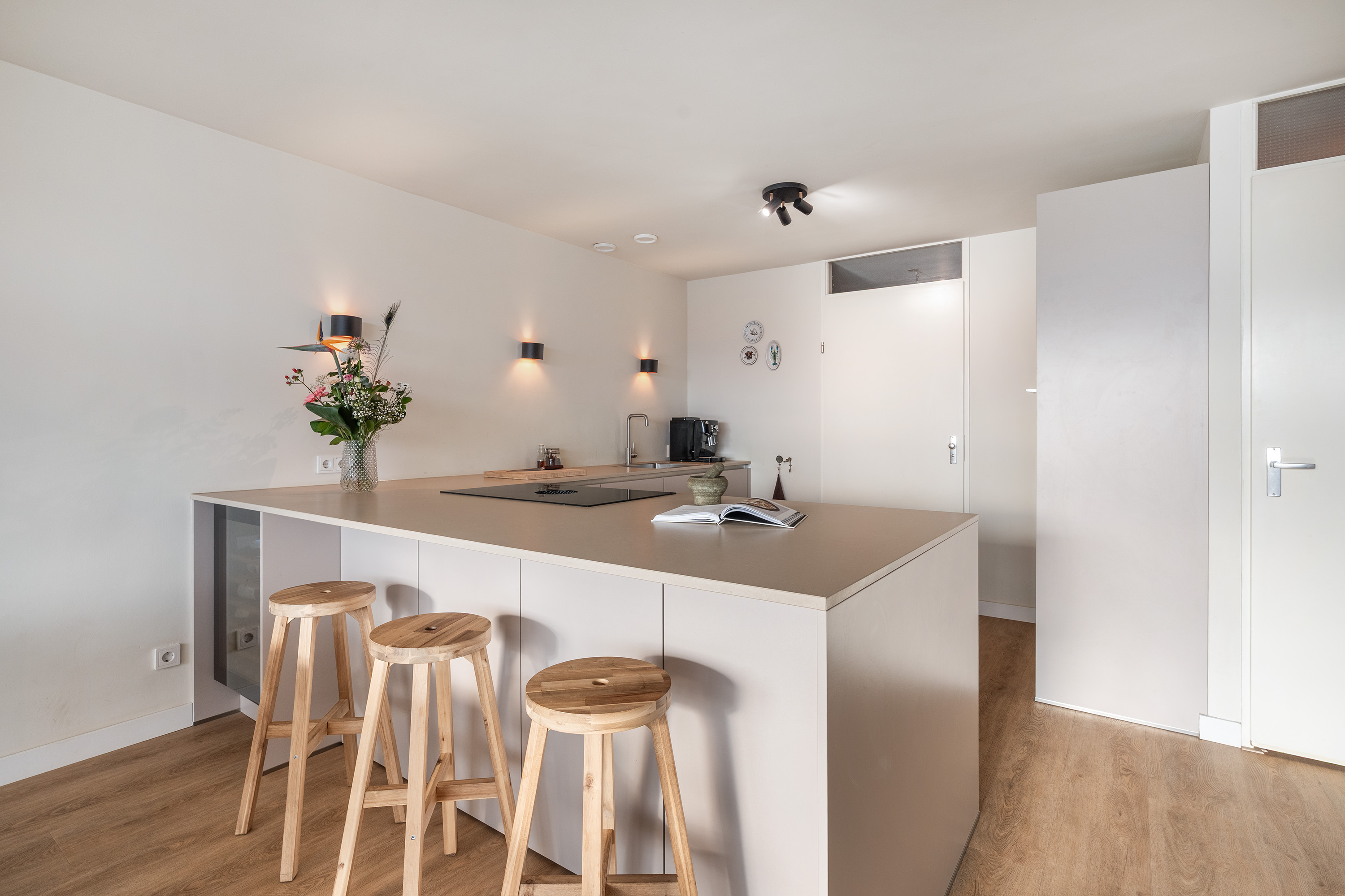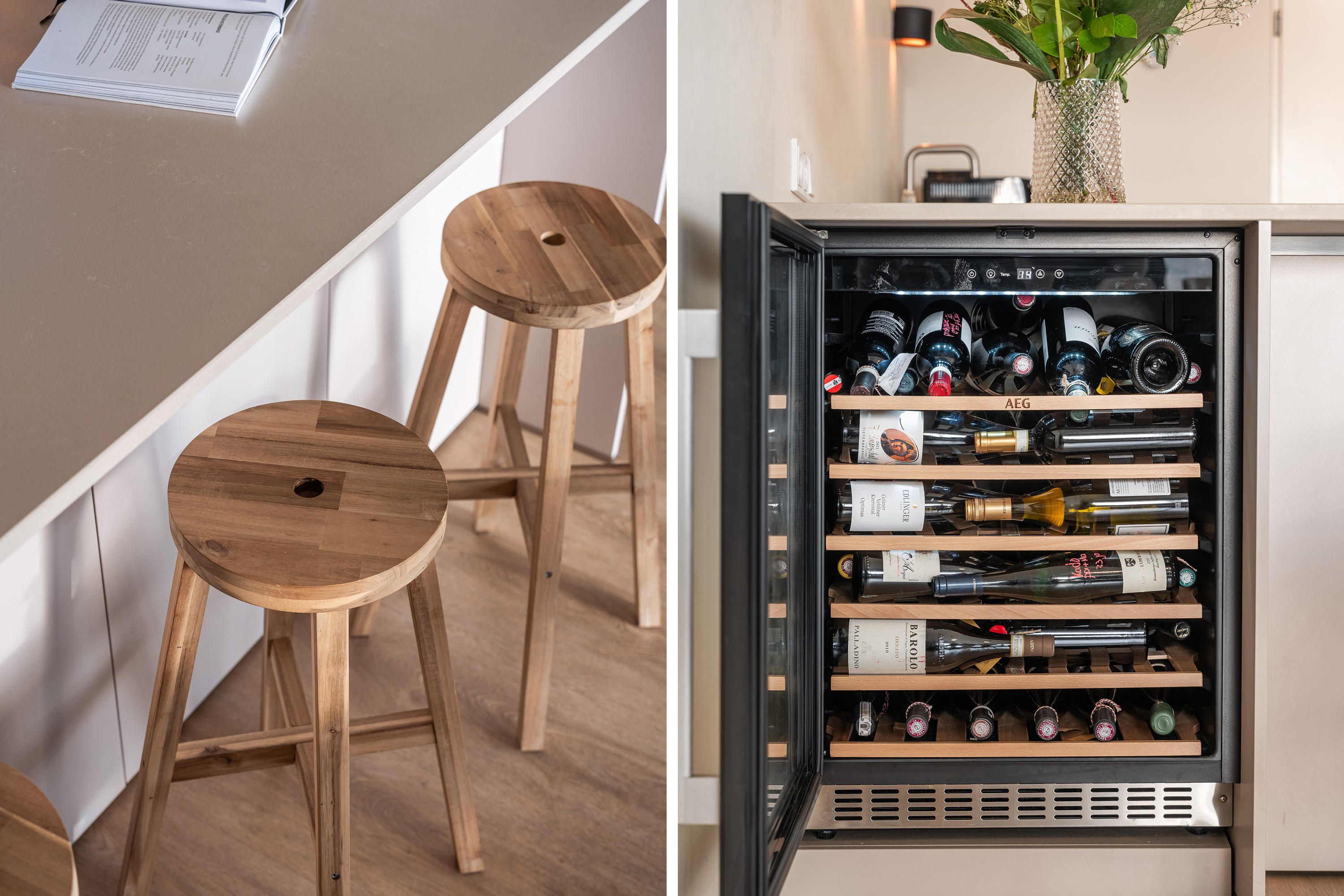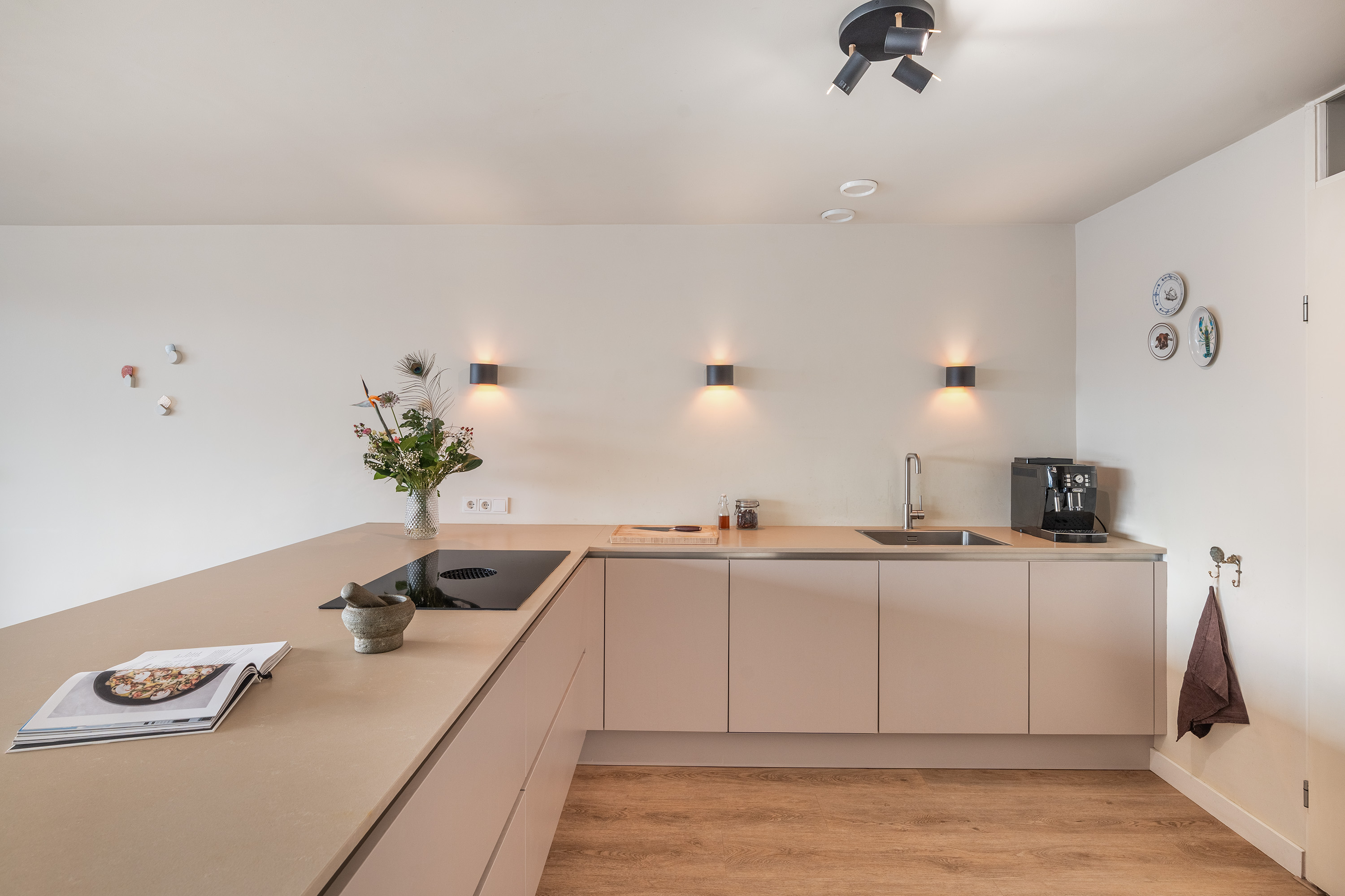 De open keuken (2021) is een absolute eyecatcher met een strakke opstelling, geïntegreerde wandspots en een bar. Hier komen functionaliteit en esthetiek samen. Greeploze kasten, een inductiekookplaat met geïntegreerde afzuiging, veel werkruimte en een wijnklimaatkast. Perfect voor de culinaire liefhebber. De keuken ademt ingetogen luxe en nodigt uit tot lange avonden koken, proeven en genieten.